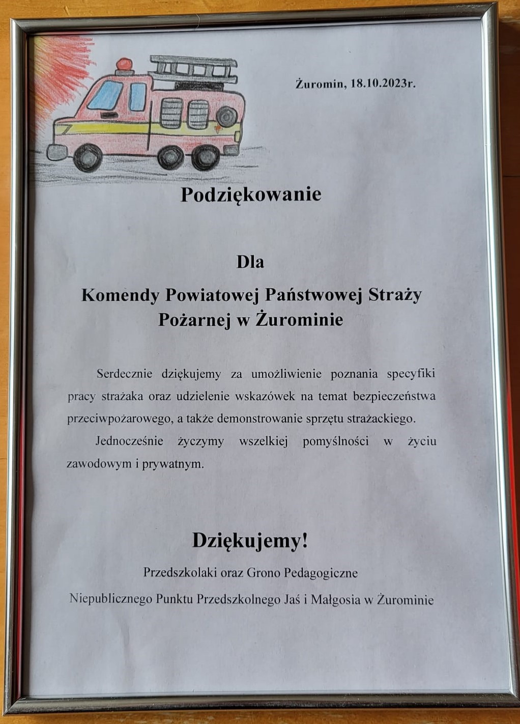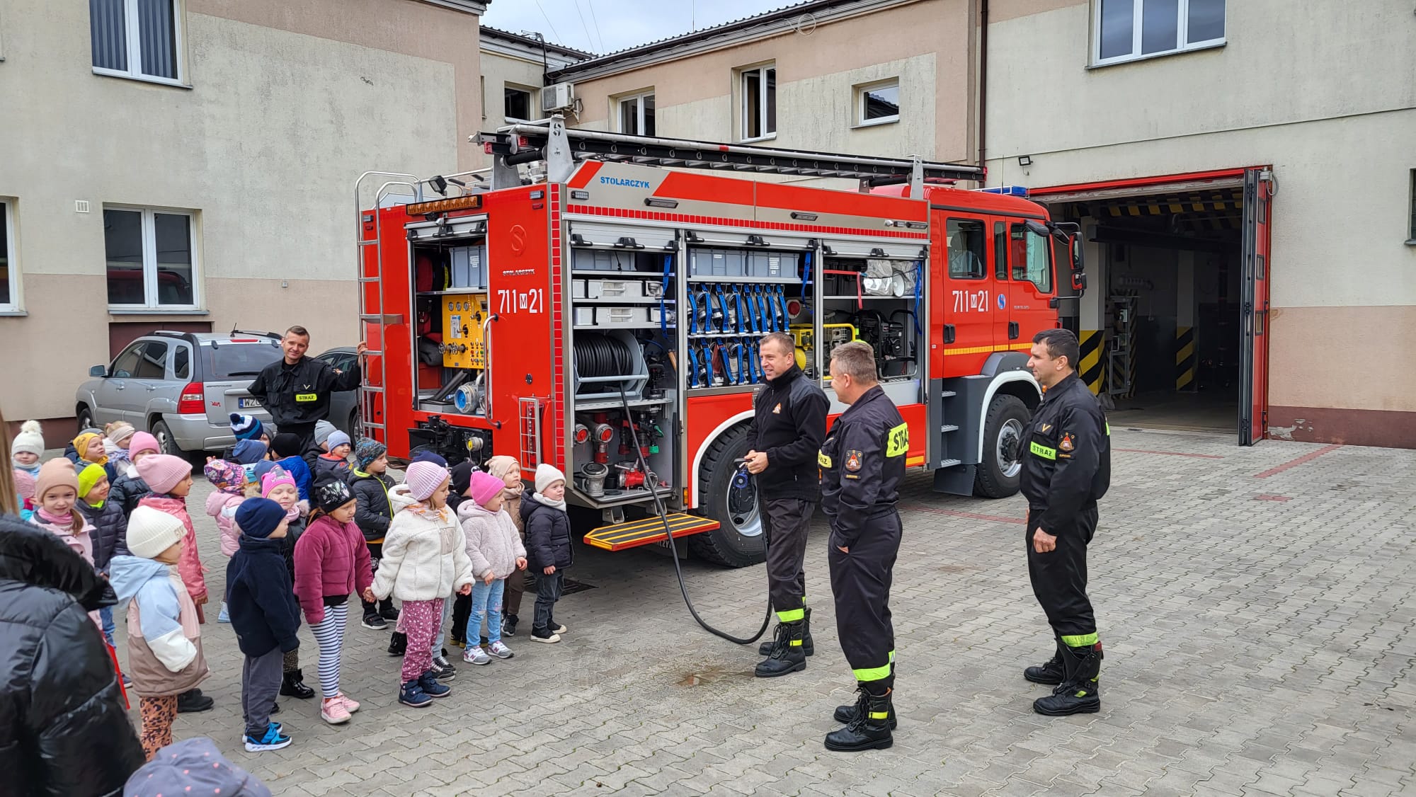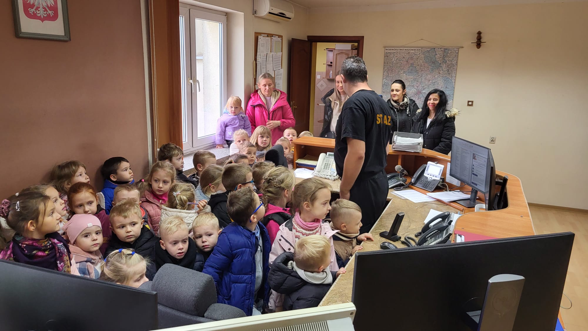18 października 2023 roku, strażaków JRG Żuromin odwiedziły dzieci i ich opiekunowie z Przedszkola „Jaś i Małgosia” w Żurominie. Opiekunowie chcieli zapoznać dzieci z pracą w podziale bojowym JRG Żuromin oraz posiadanym sprzętem pożarniczym, znajdującym się na wyposażeniu żuromińskiej jednostki. Strażacy zaprezentowali wyposażenie samochodu ratowniczo – gaśniczych oraz opowiadali o zastosowaniu w praktyce posiadanego sprzętu. Dzieci zwiedziły Stanowisko Kierowania Komendanta Powiatowego, gdzie dyżurny opowiedział o prawidłowym zgłaszaniu zdarzeń na numer alarmowy 998 i 112 oraz zachowaniu się, kiedy widzimy zagrożenie takie jak pożar czy wypadek. W związku z trwającym okresem grzewczym rozmawialiśmy również o kampanii społecznej „Czujka na straży Twojego bezpieczeństwa”, która promuje instalowanie czujek dymu i tlenku węgla w pomieszczeniach mieszkalnych.