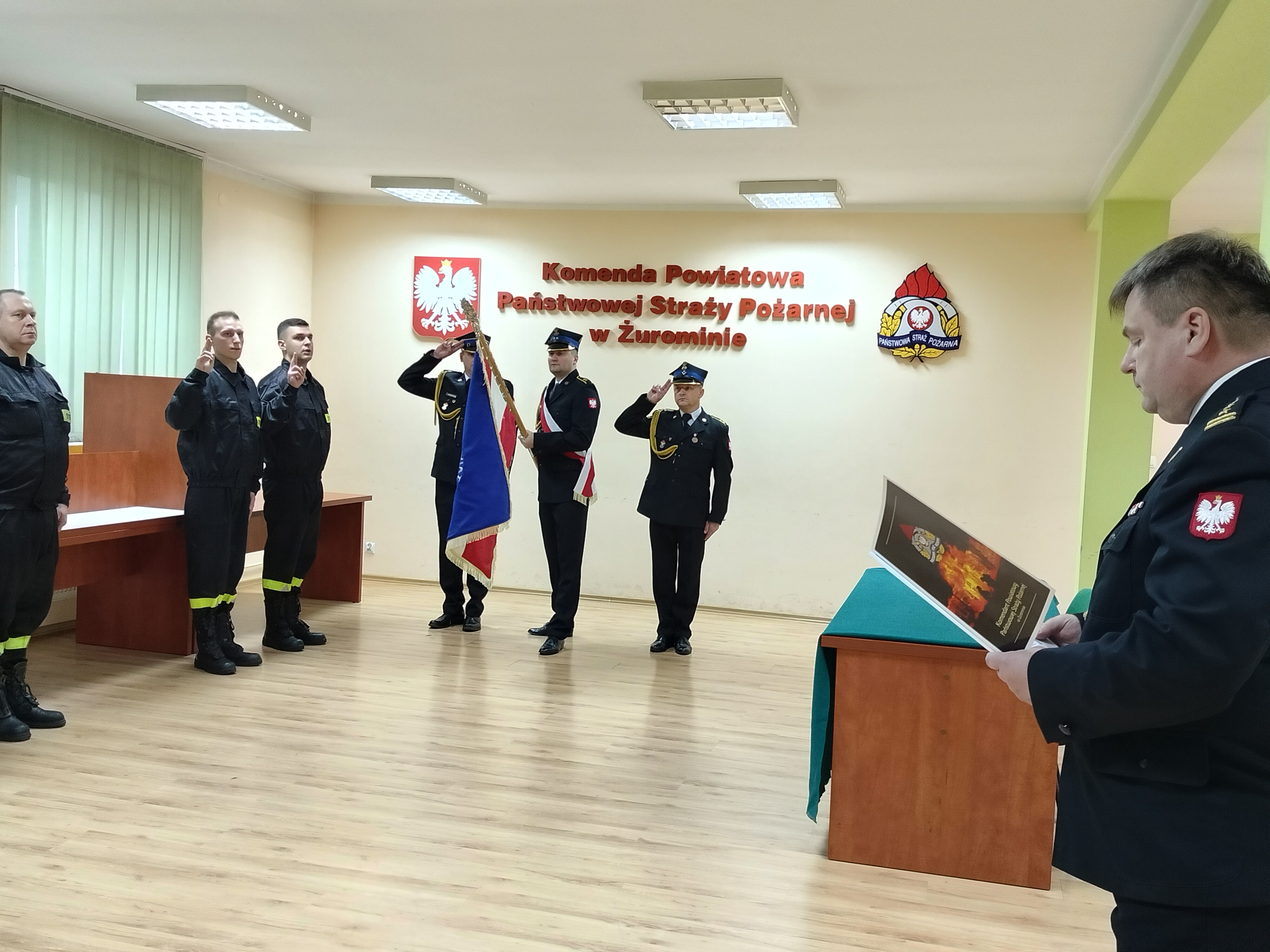 29 listopada 2022 roku w świetlicy Komendy Powiatowej Państwowej Straży Pożarnej w Żurominie odbyła się uroczysta zbiórka z okazji ślubowania, które złożyli strażacy przyjęci do służby przygotowawczej w Państwowej Straży Pożarnej. Ślubowanie przyjął Komendant Powiatowy PSP w Żurominie st. bryg. Zbigniew Kąpiński. W uroczystości udział wzięli również Zastępca Komendanta Powiatowego PSP st. kpt. Jarosław Ptaszek, Dowódca Jednostki Ratowniczo – Gaśniczej oraz funkcjonariusze i pracownicy cywilni.
