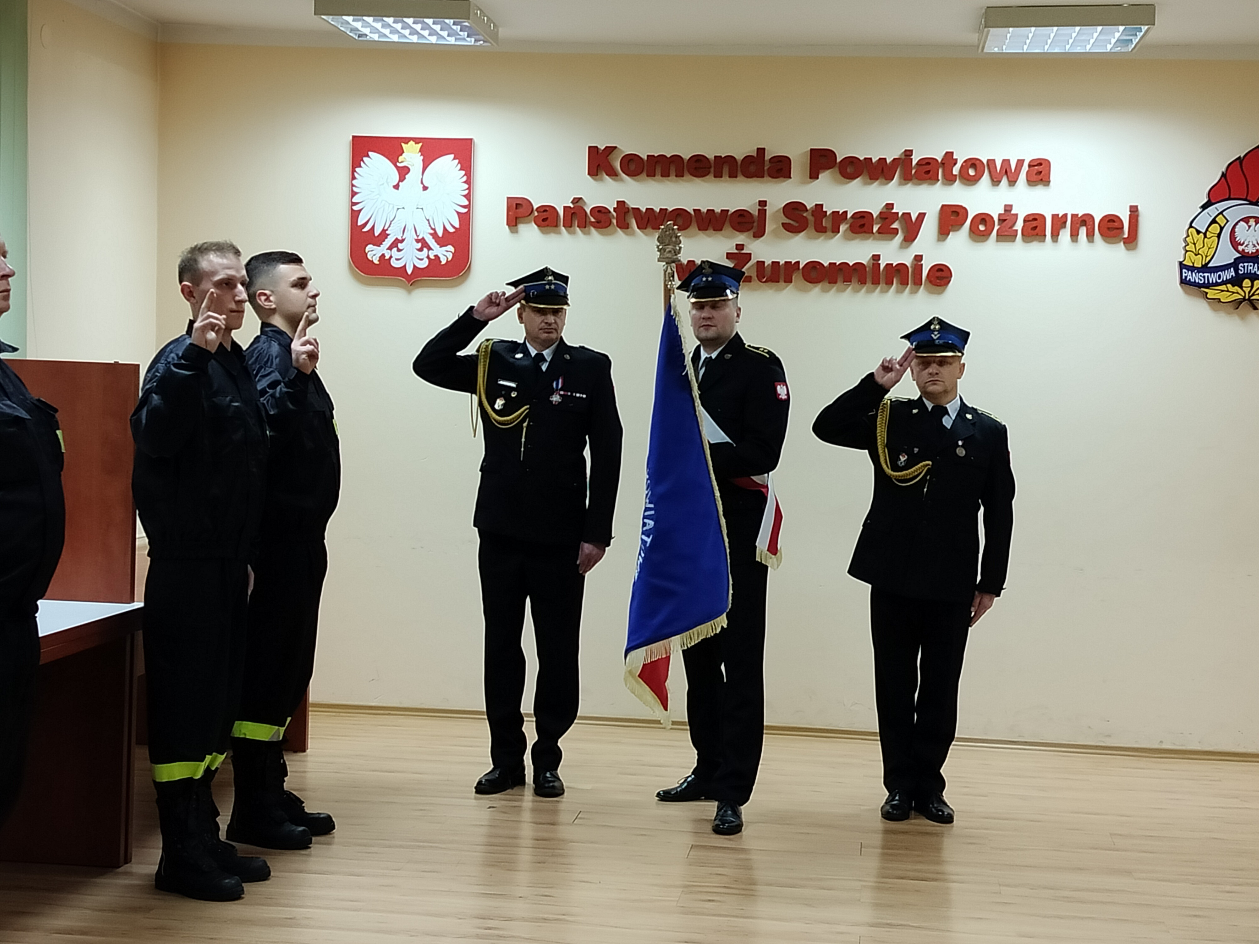 Strażacy zostali skierowani do Centralnej Szkoły Państwowej Straży Pożarnej w Częstochowie, gdzie odbędą kurs podstawowy przygotowujący do służby w Państwowej Straży Pożarnej. Po zdaniu egzaminów, rozpoczną służbę w podziale bojowym Jednostki Ratowniczo – Gaśniczej PSP w Żurominie.