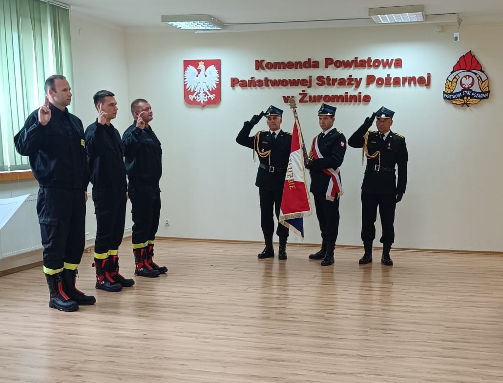 Dwóch nowoprzyjętych strażaków zostało skierowanych do Szkoły Podoficerskiej Państwowej Straży Pożarnej w Bydgoszczy, a jeden do Szkoły Aspirantów PSP w Krakowie, gdzie odbędą kurs podstawowy przygotowujący do służby w Państwowej Straży Pożarnej. Po zdaniu egzaminów, rozpoczną służbę w podziale bojowym Jednostki Ratowniczo – Gaśniczej Państwowej Straży Pożarnej w Żurominie.