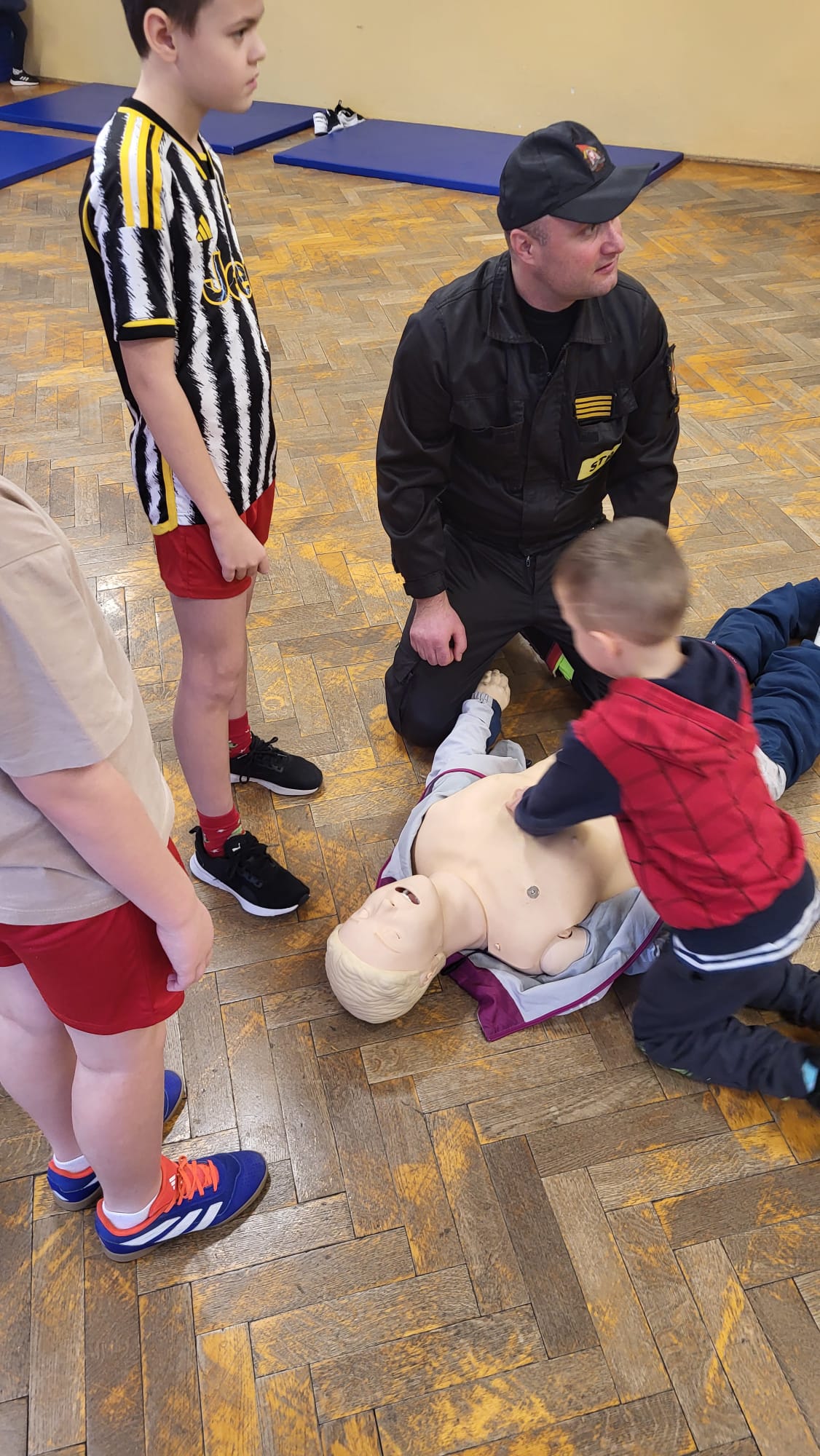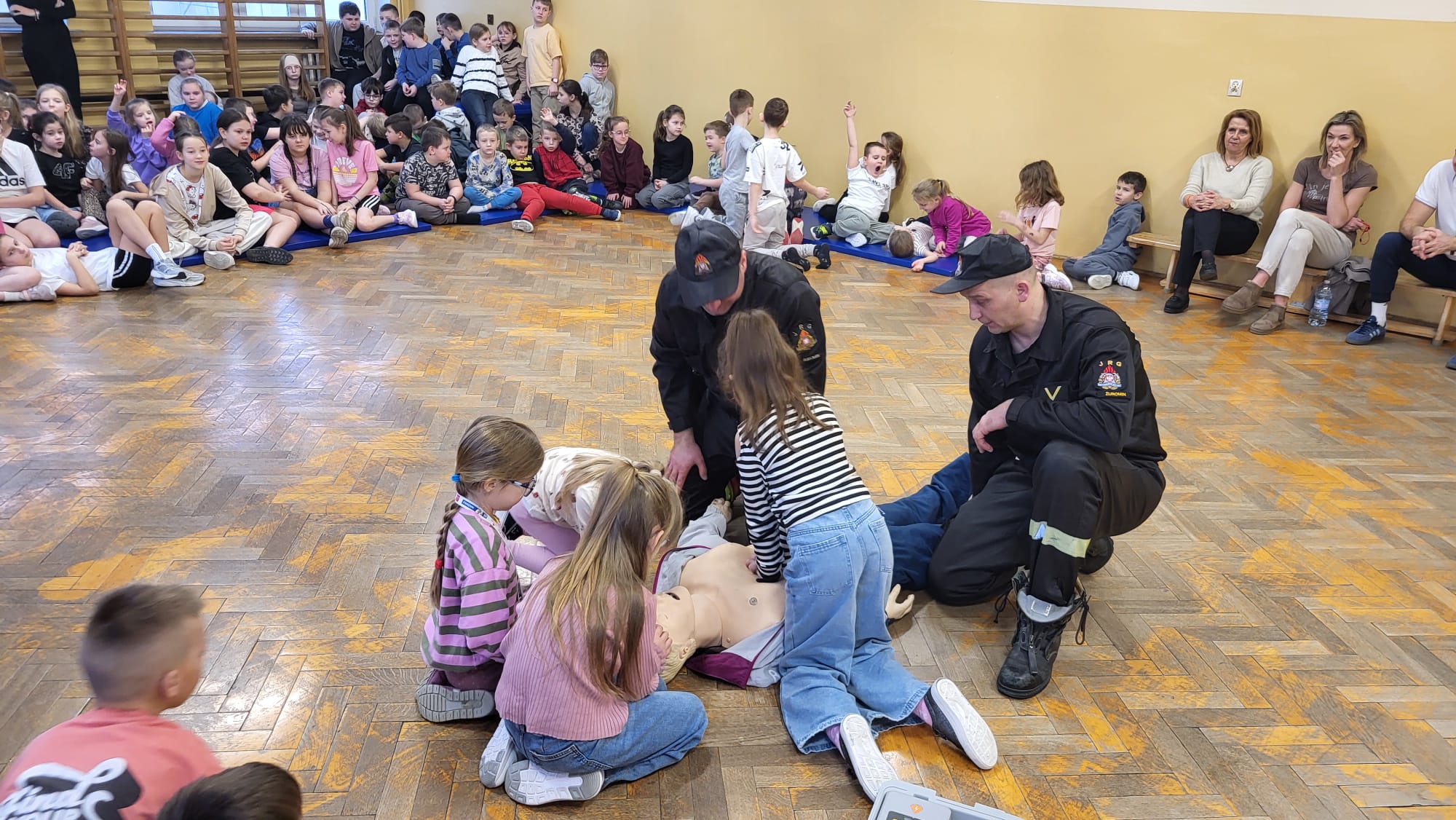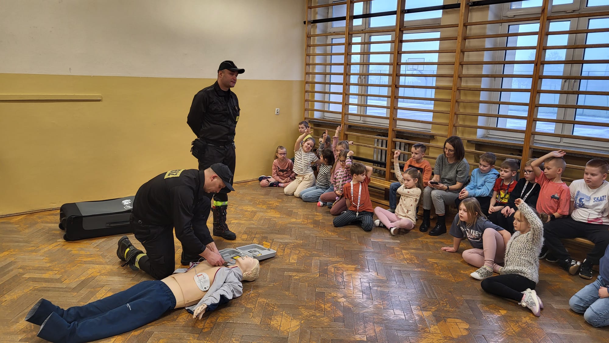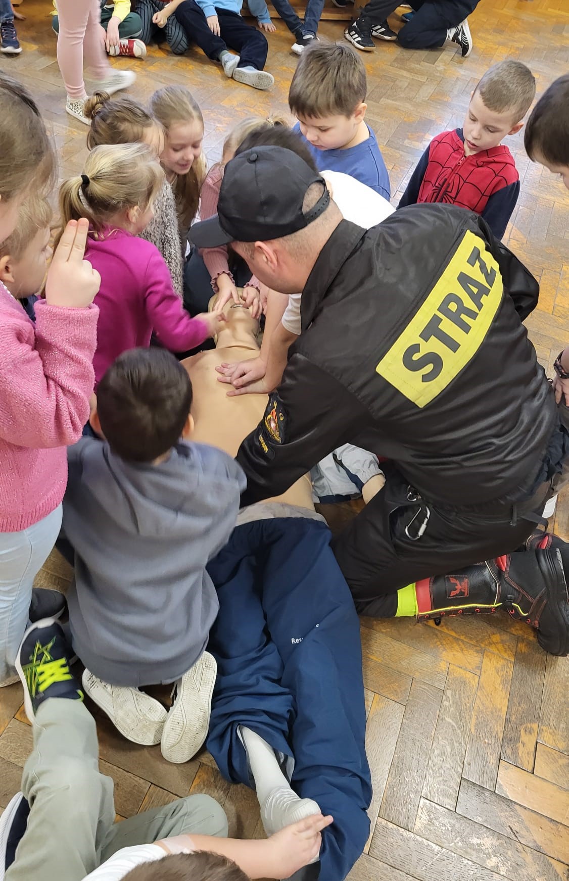 Strażacy przeprowadzili pokaz udzielania kwalifikowanej pierwszej pomocy, omówiono z dziećmi zasady zachowania się podczas pożaru i wypadku oraz sposób zgłaszania zdarzeń na numery alarmowe służb ratunkowych. Rozmawiano o zachowaniu się na lodowisku, podczas zjeżdżania na sankach, o zagrożeniach występujących przy niskich temperaturach i wychłodzeniu organizmu, a także o noszeniu odblasków w warunkach ograniczonej widoczności i poza terenem zabudowanym. Strażacy rozmawiali z dziećmi o właściwym zachowaniu kiedy załamie się pod nami lub inną osobą lód.