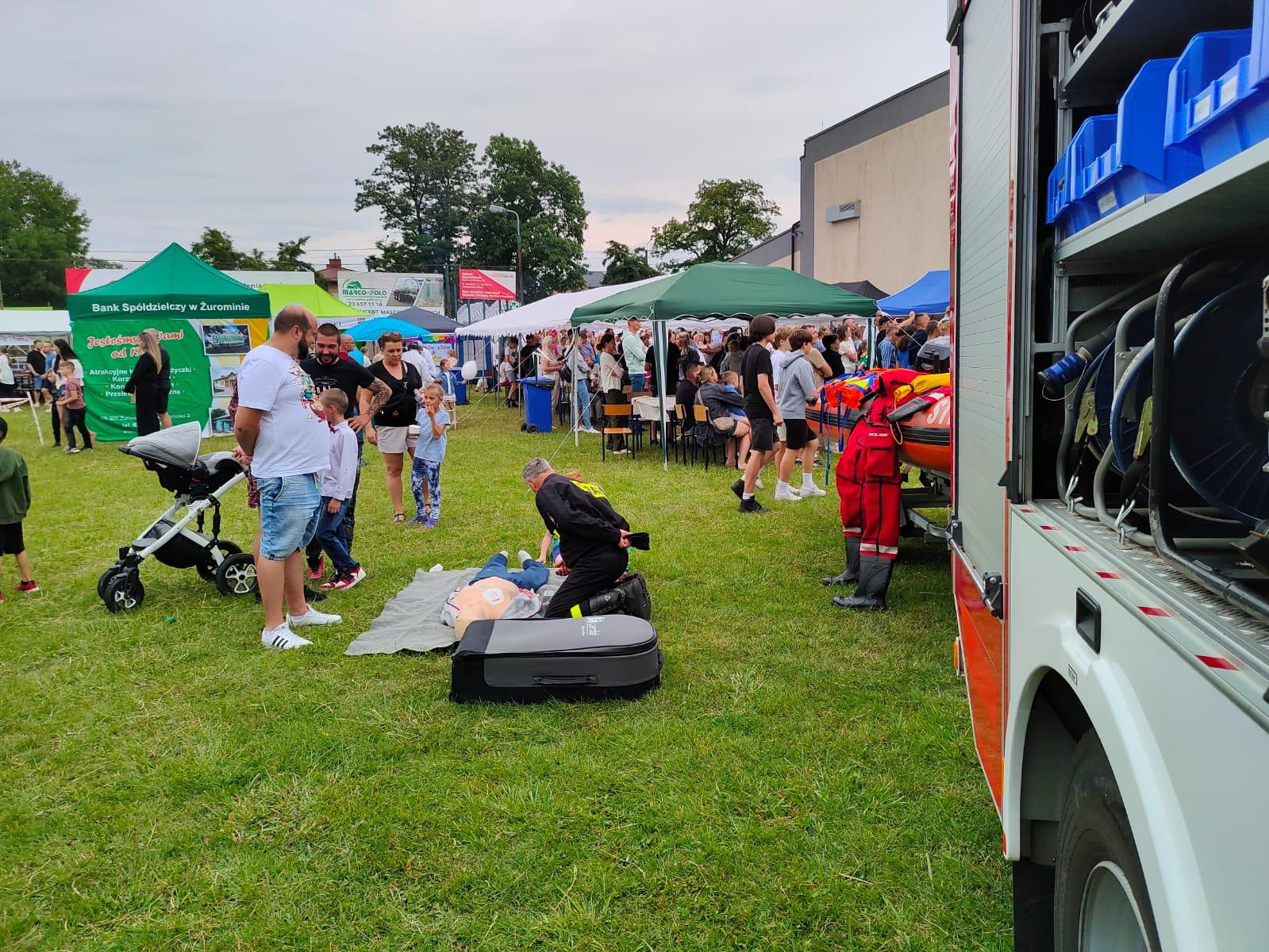 W dniu 16 czerwca 2024 roku, na zaproszenie Rady Rodziców Szkoły Podstawowej nr 1 w Żurominie, strażacy zmiany 3 Jednostki Ratowniczo - Gaśniczej, wzięli udział w festynie rodzinnym, który zorganizowano na boisku Szkoły Podstawowej. Podczas festynu strażacy przeprowadzili dla uczestników prezentację sprzętu ratowniczo – gaśniczego znajdującego się na wyposażeniu pojazdów pożarniczych, sprzętu do ratownictwa wodnego oraz prezentowali dla osób zainteresowanych zasady udzielania pierwszej pomocy na przygotowanych fantomach. Korzystając ze spotkania z uczestnikami festynu, w związku ze zbliżającym się okresem letnim i spędzaniem czasu na świeżym powietrzu, strażacy przypominali również o zasadach dotyczących bezpieczeństwa na obszarach wodnych oraz bezpieczeństwa w lesie. Tego typu imprezy są świetną okazją dla strażaków do propagowania akcji społecznych promowanych przez Państwową Straż Pożarną dotyczącą bezpieczeństwa mieszkańców powiatu, w tym tych najmłodszych. Organizatorom dziękujemy za zaproszenie.