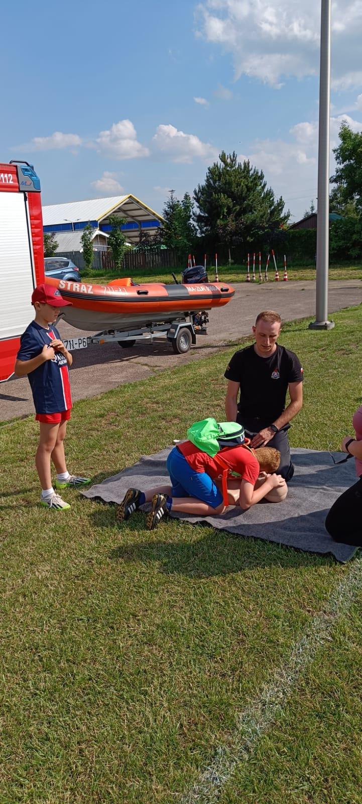 W dniu 8 czerwca 2024 roku, na zaproszenie Prezesa Miejskiego Klubu Sportowego Wkra Żuromin, strażacy zmiany 1 JRG Żuromin, wzięli udział w pikniku sportowym, który zorganizowano na stadionie miejskim w Żurominie z okazji Dnia Dziecka. Podczas pikniku strażacy przeprowadzili pokaz sprzętu ratowniczo – gaśniczego znajdującego się na wyposażeniu pojazdów pożarniczych oraz sprzętu do ratownictwa wodnego. W związku ze zbliżającym się okresem letnim rozmawiali z uczestnikami pikniku o bezpieczeństwie podczas przebywania nad wodą, a także dla osób chętnych była możliwość nauczenia się udzielania pierwszej pomocy na przygotowanym przez strażaków fantomie.