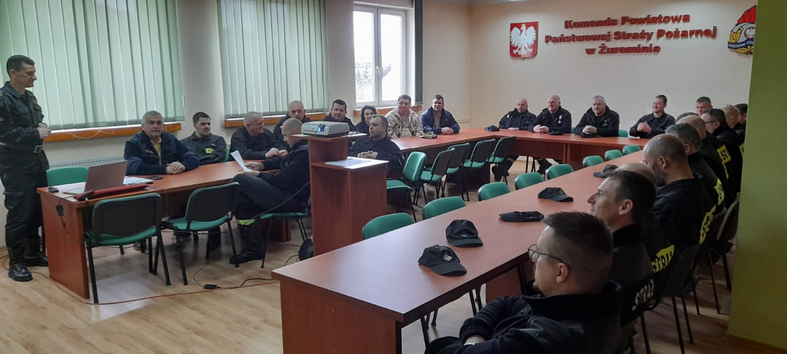 W dniu 29 kwietnia 2023 roku, w Komendzie Powiatowej Państwowej Straży Pożarnej w Żurominie, odbyło się szkolenie dotyczące standardowych zasad postępowania podczas zdarzeń z instalacjami fotowoltaicznymi oraz z samochodami osobowymi z napędem elektrycznym. W szkoleniu udział wzięli Naczelnicy i Dowódcy Ochotniczych Straży Pożarnych z terenu powiatu. Szkolenie miało na celu przybliżenie uczestnikom spotkania zagrożeń związanych z działaniami w obrębie instalacji fotowoltaicznych oraz podczas zdarzeń z pojazdami elektrycznymi, a także przedstawienie bezpiecznych zachowań podczas prowadzenia działań ratowniczo - gaśniczych.