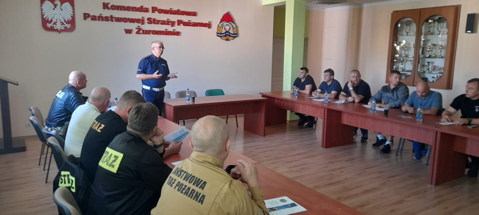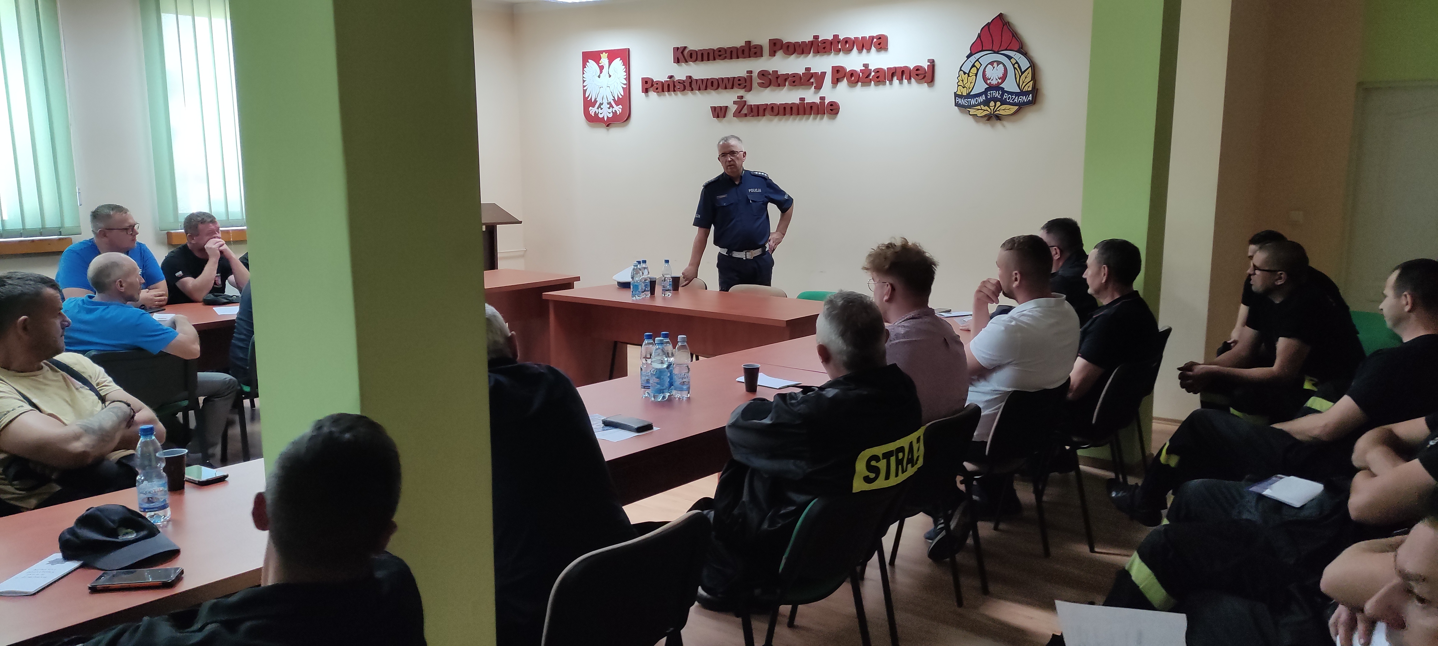 W dniach 27-29 września 2023 roku, po raz kolejny w tym roku, na świetlicy Komendy Powiatowej Państwowej Straży Pożarnej w Żurominie, odbyło się szkolenie przeznaczone dla strażaków Państwowej Straży Pożarnej oraz Ochotniczych Straży Pożarnych z terenu powiatu, dotyczące przestrzegania zasad bezpieczeństwa w ruchu drogowym przez kierujących pojazdami uprzywilejowanymi. Szkolenie przeprowadził Naczelnik Wydziału Ruchu Drogowego Komendy Powiatowej Policji w Żurominie w zakresie prawidłowego i bezpiecznego poruszania się pojazdami pożarniczymi uprzywilejowanymi w ruchu oraz funkcjonariusz Wydziału Operacyjnego Komendy Powiatowej PSP w Żurominie w zakresie bezpieczeństwa i higieny służby podczas używania pojazdów pożarniczych i innych środków transportu.