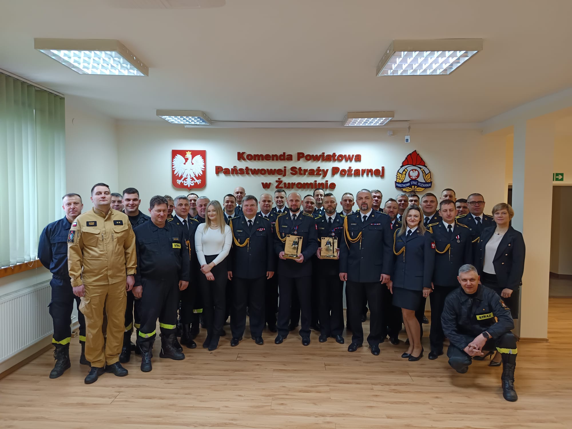 Dnia 26 lutego 2025 roku w świetlicy Komendy Powiatowej PSP w Żurominie odbyła się uroczystość związana z odejściem na zaopatrzenie emerytalne dwóch funkcjonariusz pełniących na co dzień służbę w Jednostce Ratowniczo – Gaśniczej. W uroczystym apelu uczestniczyli funkcjonariusze i pracownicy cywilni żuromińskiej komendy. Komendant Powiatowy PSP w Żurominie st. bryg. Zbigniew Kąpiński przybliżył przebieg służby odchodzących strażaków i podziękował za służbę w imieniu wszystkich funkcjonariuszy komendy. Na zaopatrzenie emerytalne odeszli: