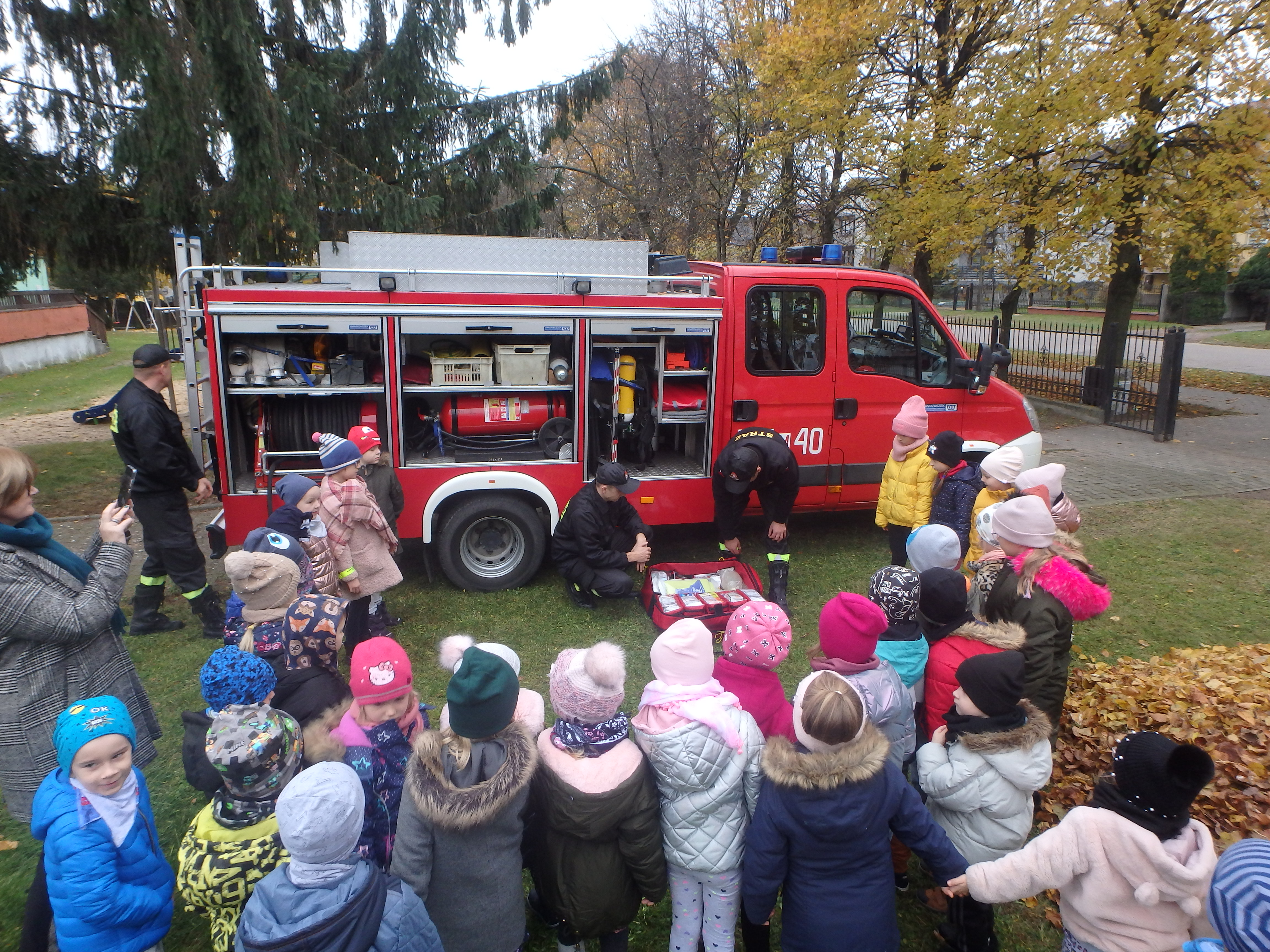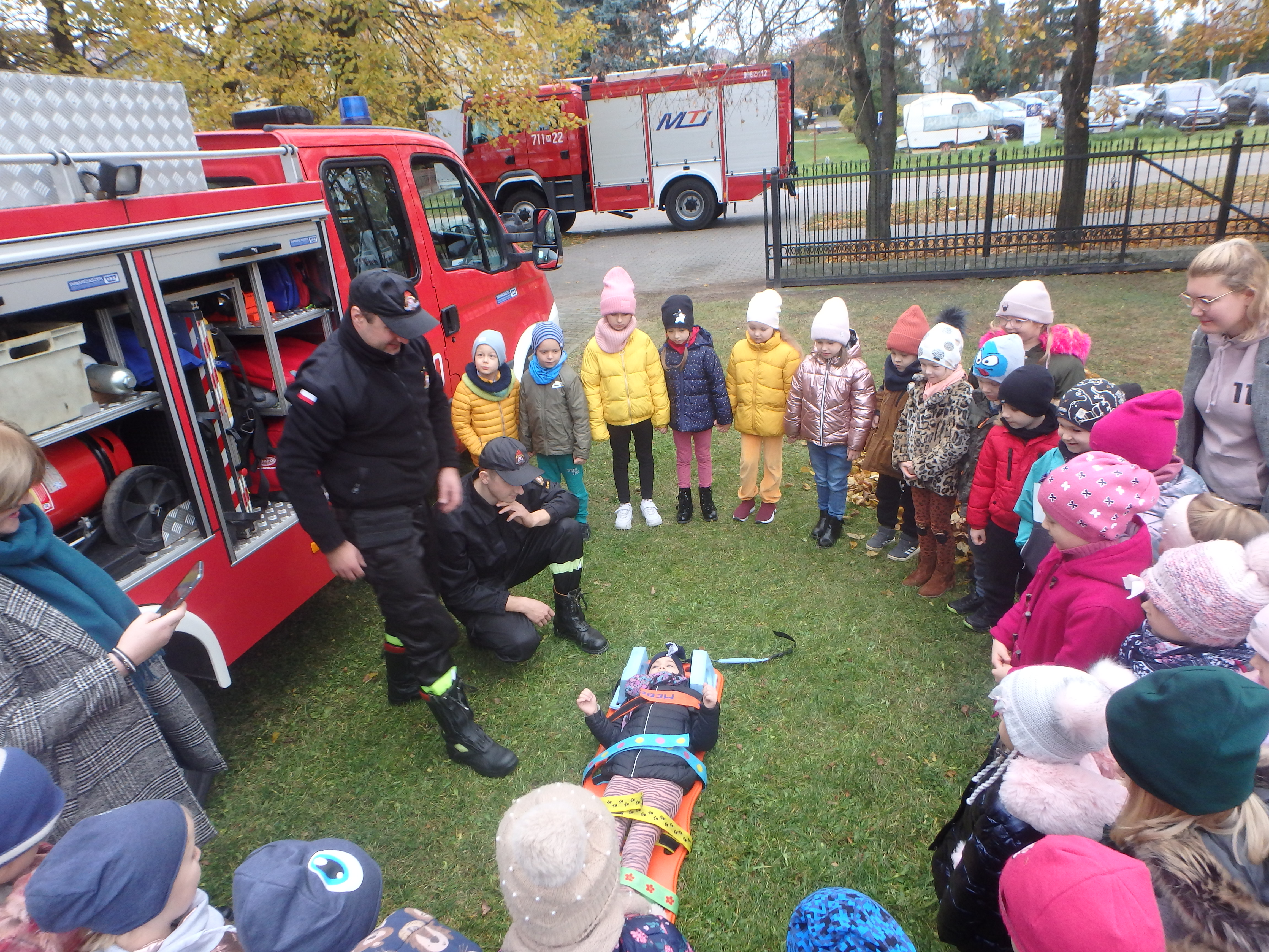 W dniu 28.10.2021r. w Przedszkolu Samorządowym nr 2 w Żurominie przeprowadzono pokaz sprzętu znajdującego się na wyposażeniu pojazdów pożarniczych oraz pokaz udzielania kwalifikowanej pierwszej pomocy. Ponadto omówiono ewentualne zagrożenia i zagadnienia związane z bezpieczeństwem uwzględniając nadchodzący okres zimowy. Zaprezentowano również działanie czujki dymu i czadu z omówieniem zagrożeń ze strony tlenku węgla. W zajęciach uczestniczyły grupy przedszkolne oraz ich opiekunowie.