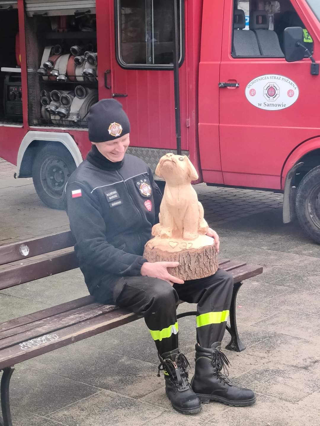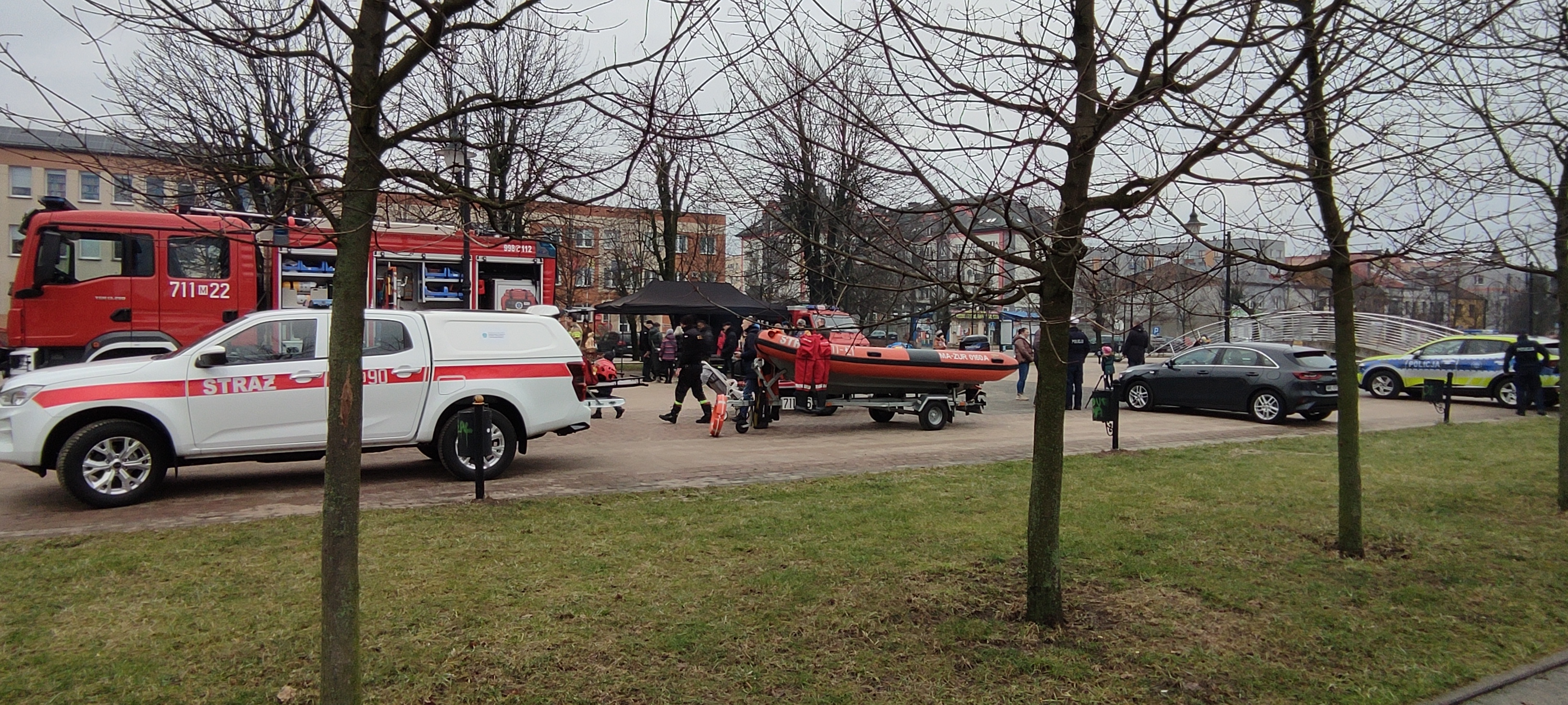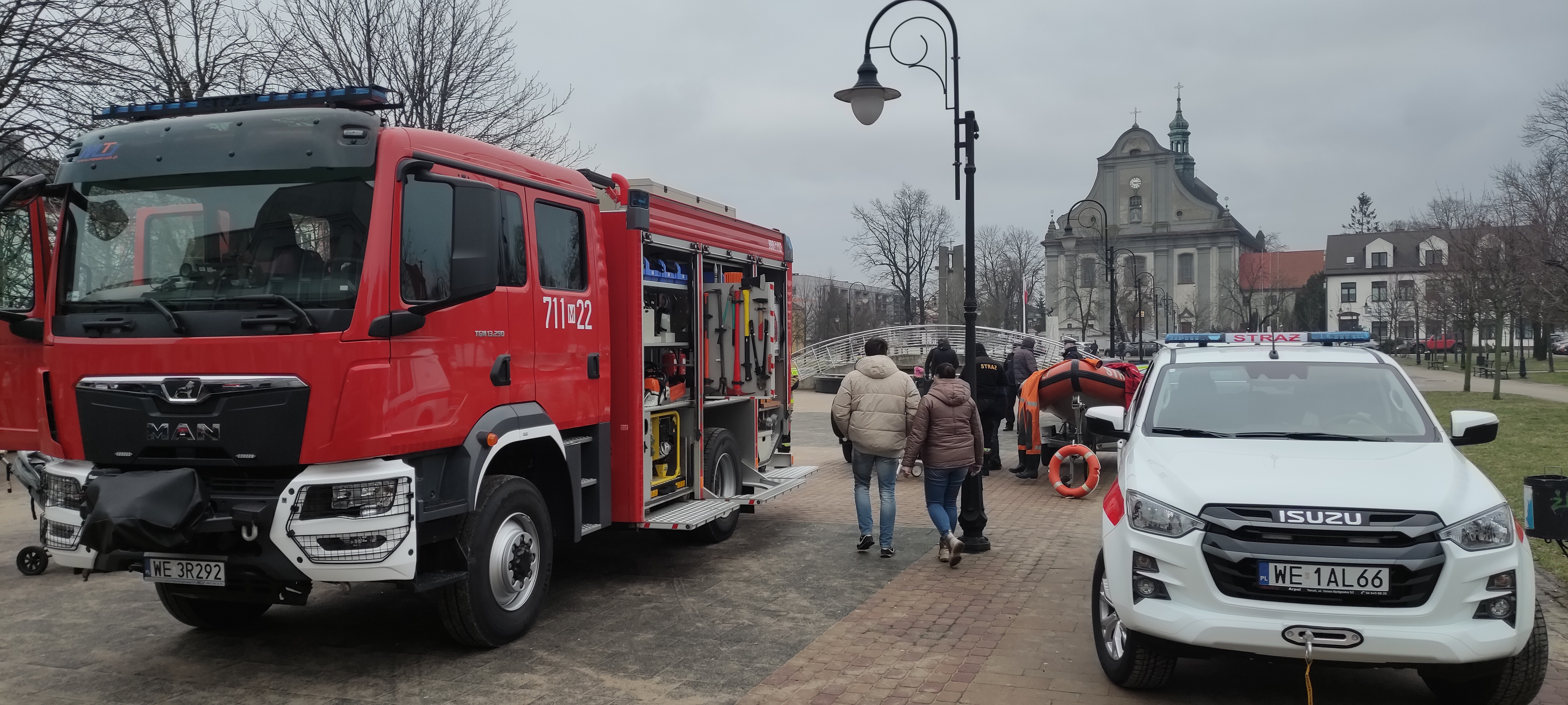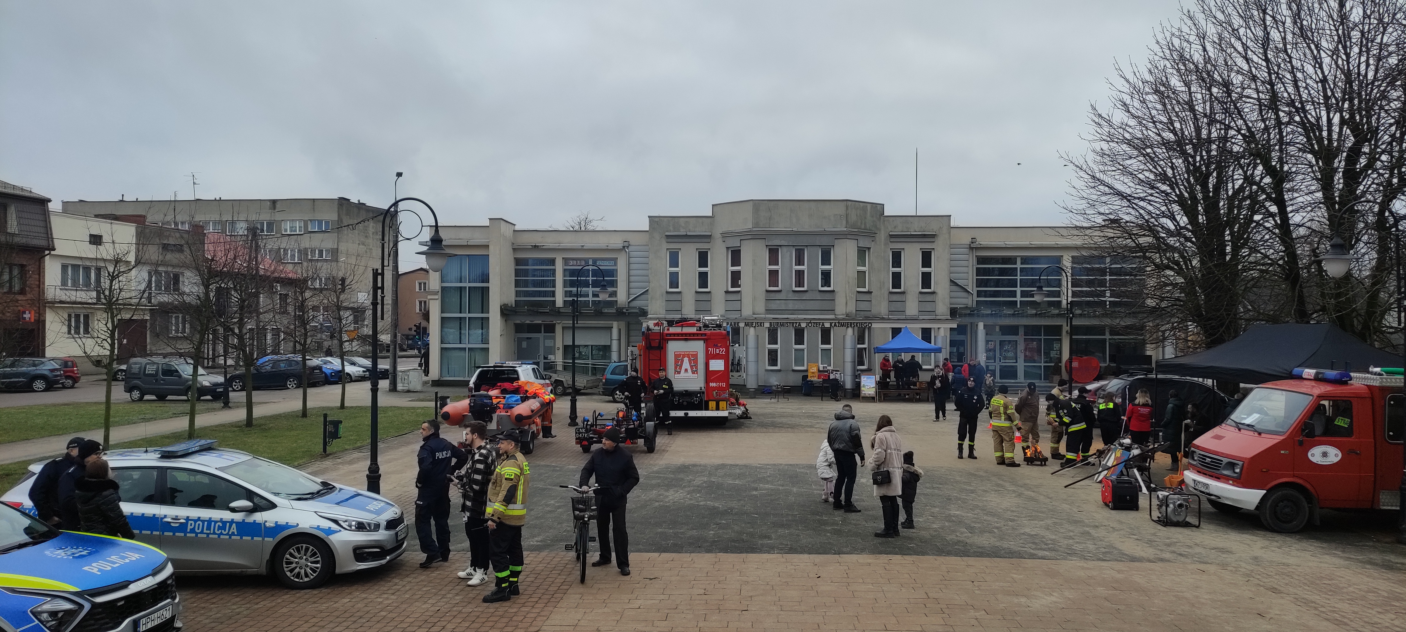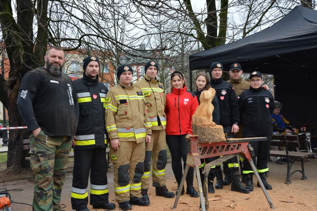 Natomiast przed budynkiem Żuromińskiego Centrum Kultury odbył się pokaz pojazdu ratowniczo – gaśniczego, pojazdu rozpoznawczo – ratowniczego oraz przyczepek z pontonem i saniami wodno – lodowymi. Osoby zainteresowane mogły również zobaczyć sprzęt do ratownictwa wodno – lodowego, którym dysponują żuromińscy strażacy, a także pozostały sprzęt pożarniczy będący na wyposażeniu pojazdów. W tym samym czasie druhowie z OSP Sarnowo zabezpieczali pracę rzeźbiącego w drewnie piłą łańcuchową artysty, który przeznaczył na orkiestrową licytację swoją pracę.