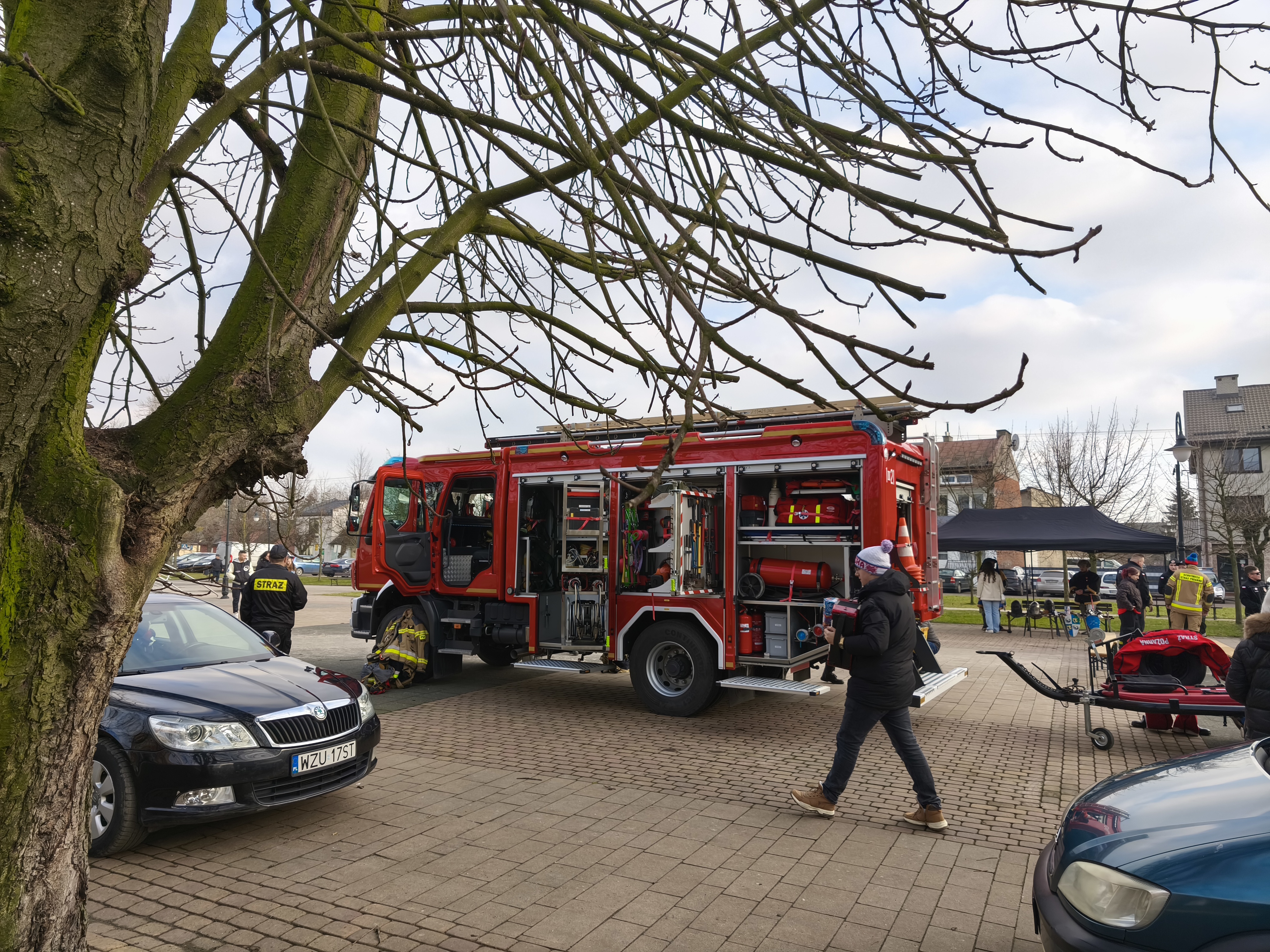 W tym samym czasie przed budynkiem ŻCK odbył się pokaz pojazdu pożarniczego i sprzętu ratowniczo – gaśniczego znajdującego się na jego wyposażeniu, pojazdu rozpoznawczo – ratowniczego oraz sprzętu ratownictwa wodno – lodowego, w tym sań wodno – lodowych, kombinezonów do pracy w wodzie oraz kamizelek asekuracyjnych.