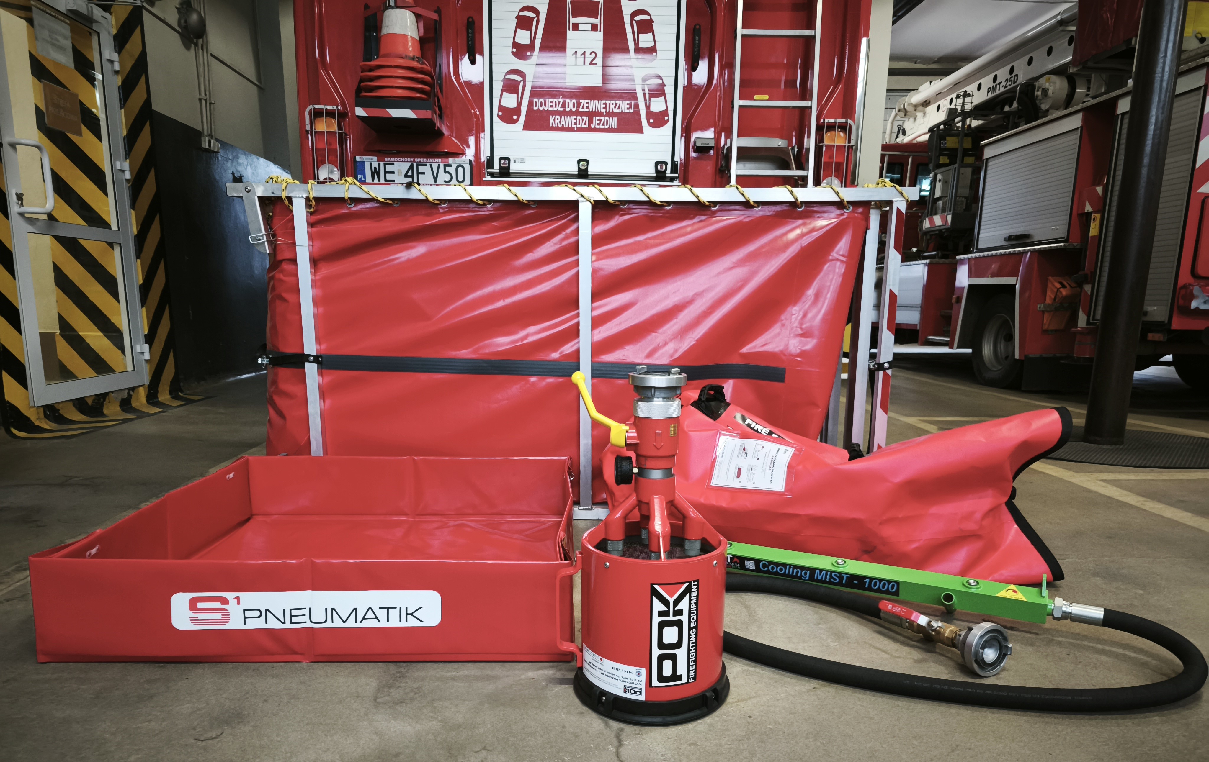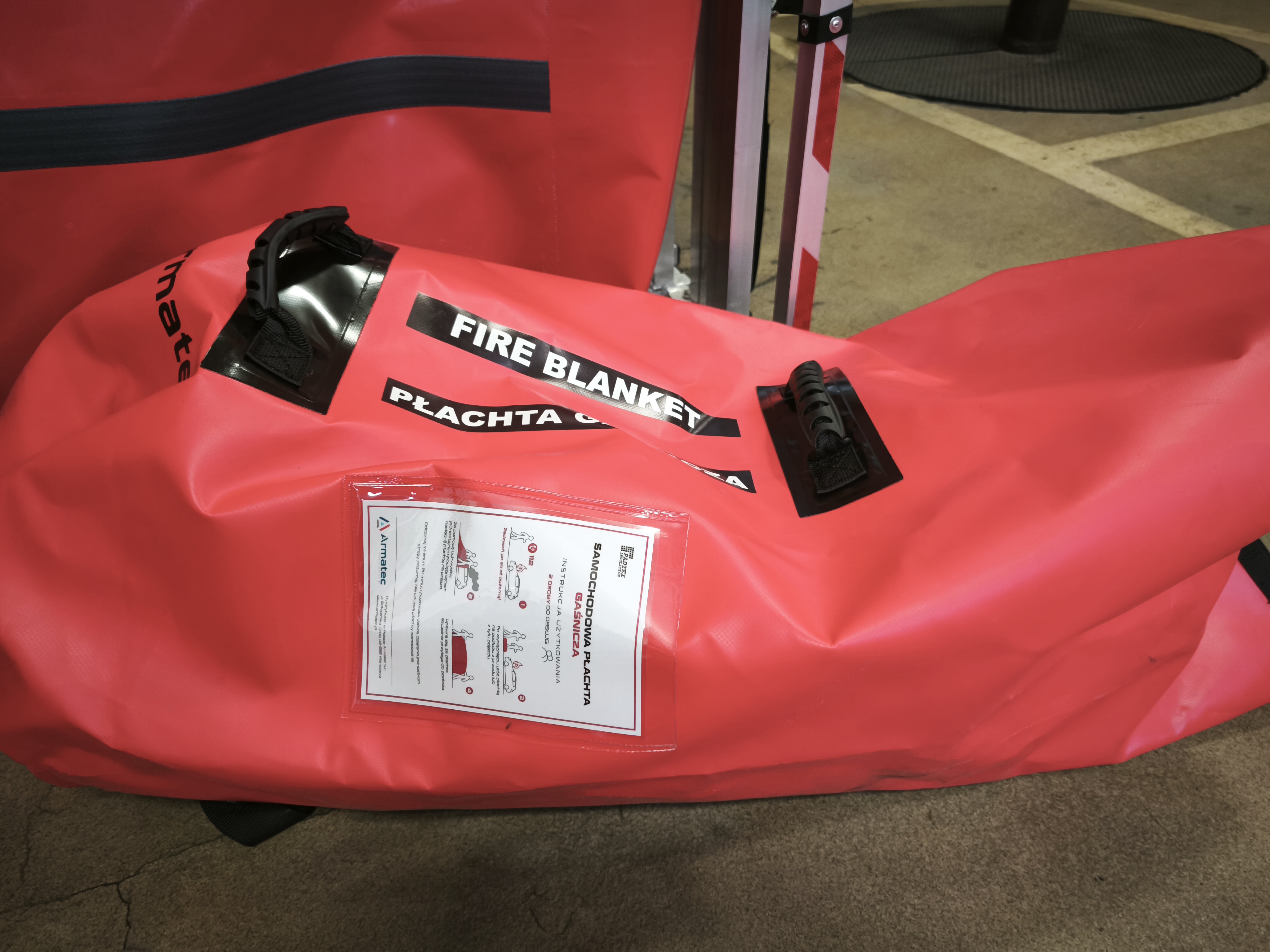 - Płachta gaśnicza - narzędzie do walki z pożarami samochodów, baterii, paneli fotowoltaicznych oraz innymi pożarami, gdzie rozmiar płachty pozwala na ich przykrycie i odcięcie dopływu tlenu. Skutecznie tłumi pożary pojazdów elektrycznych, hybrydowych, a także spalinowych. Ogranicza toksyczne zadymienie, powstrzymuje rozprzestrzenianie się ognia, jest wielokrotnego użycia i odporna na działanie temperatury do 1300 ºC.;