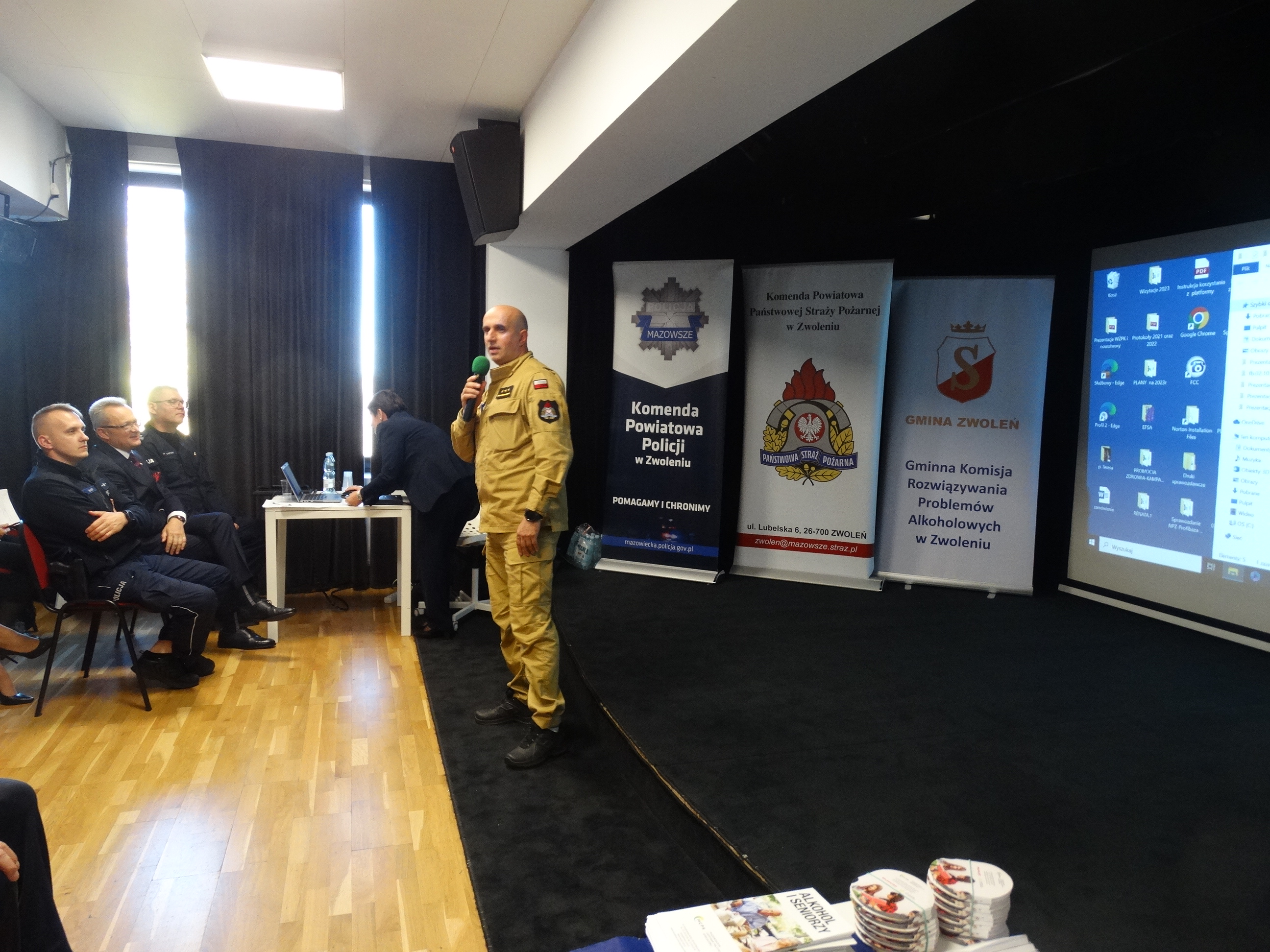 W debacie uczestniczył funkcjonariusz Komendy Powiatowej Państwowej Straży Pożarnej w Zwoleniu, który w związku z rozpoczętym sezonem grzewczym będącym jednocześnie okresem gwałtownego wzrostu liczby pożarów mieszkań oraz zdarzeń związanych zatruciami tlenkiem węgla przedstawił zasady kampanii edukacyjno-informacyjnej pt. „Czujka na straży Twojego bezpieczeństwa”. Ponadto omówił problematykę związaną z prowadzonymi działaniami Państwowej Straży Pożarnej w ramach prewencji społecznej.