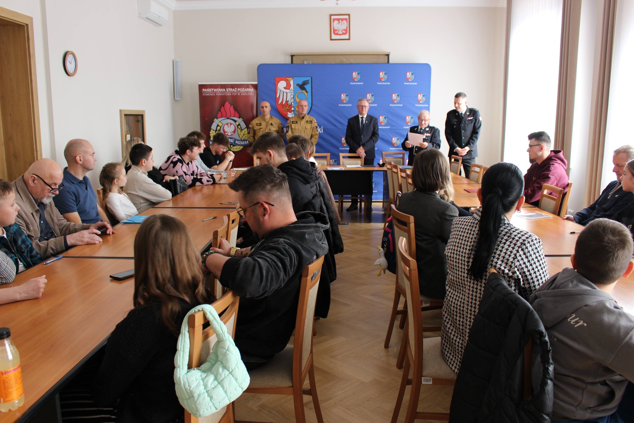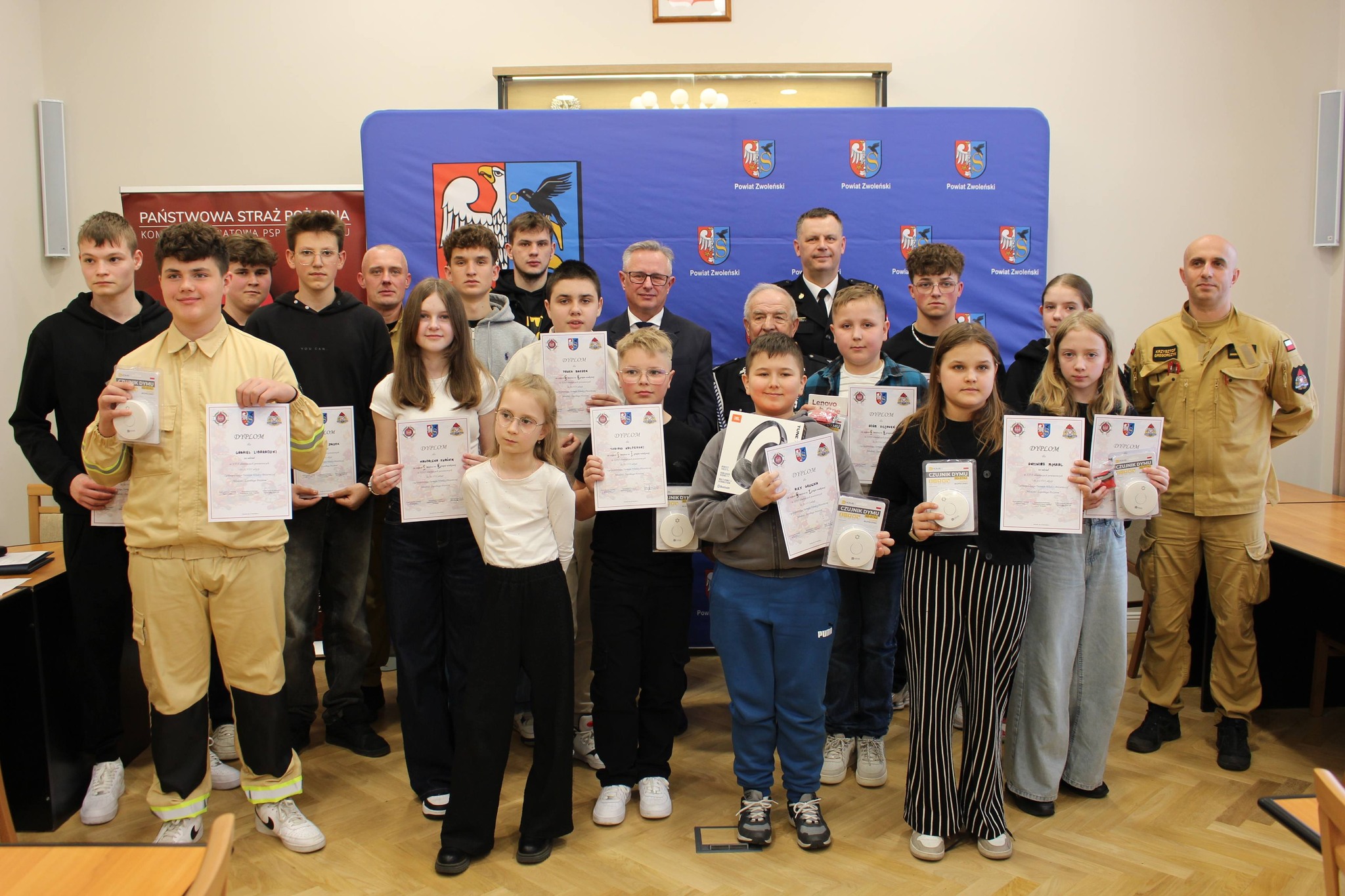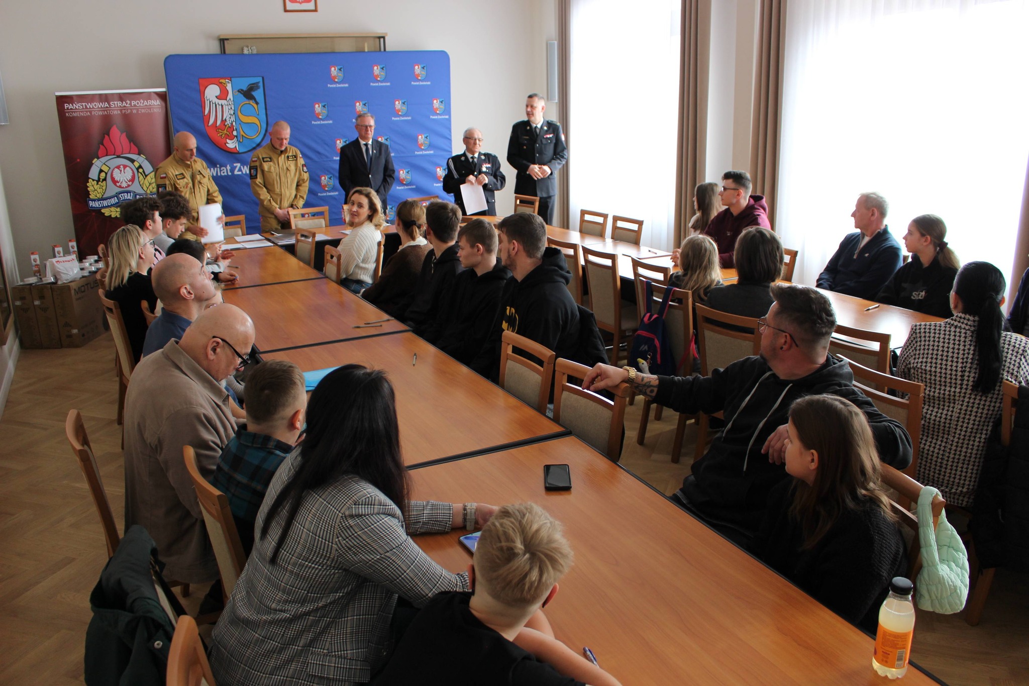 27 marca br. w Starostwie Powiatowym w Zwoleniu odbyły się XXVI eliminacje powiatowe Ogólnopolskiego Turnieju Wiedzy Pożarniczej “Młodzież Zapobiega Pożarom”. Organizatorami turnieju byli Oddział Powiatowy Związku Ochotniczych Straży Pożarnych Rzeczypospolitej Polskiej w Zwoleniu oraz Komenda Powiatowa Państwowej Straży Pożarnej w Zwoleniu. Wszyscy uczestnicy turnieju uhonorowani zostali okolicznościowymi dyplomami, nagrodami rzeczowymi oraz czujkami dymu lub czujkami tlenku węgla które wręczyli Pan Andrzej Skorek - Starosta Zwoleński, kpt. Łukasz Konopski - Z-ca Komendanta Powiatowego PSP w Zwoleniu, dh Marcin Płachta Sekretarz Zarządu Oddziału Powiatowego ZOSP RP w Zwoleniu, dh Marian Kuś Prezes Zarządu Powiatowego ZOSP RP w Zwoleniu.