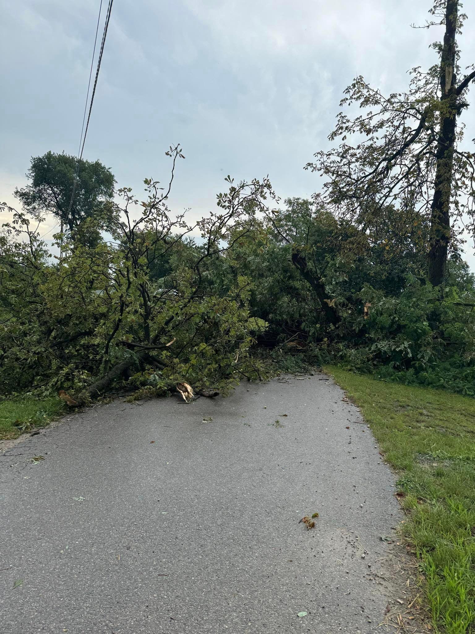 wiatrołomów w tym powalone drzewa, zerwane linie energetyczne. Zalane zostały piwnice w