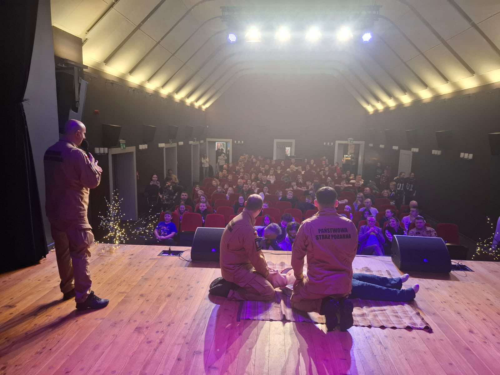 Strażacy zaprezentowali sprzęt pożarniczy znajdujący się na wyposażeniu samochodów ratowniczo-gaśniczych, omówili zasady udzielania kwalifikowanej pierwszej pomocy przy użyciu defibrylatora AED oraz przeprowadzili pogadankę w ramach akcji na temat „Bezpiecznych Ferii” i „Czujka na Straży Twojego Bezpieczeństwa”.