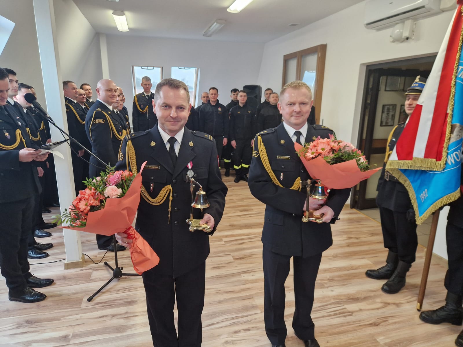 W uroczystym apelu z okazji zakończenia służby bryg. Mariusza Grudzińskiego oraz mł. bryg. Jacka Grudzińskiego odchodzącym strażakom w obecności zebranych funkcjonariuszy i pracowników cywilnych oraz zaproszonych gości, podziękowania złożył Komendant Powiatowy PSP w Zwoleniu st. bryg. Paweł Potucha. W trakcie uroczystości przedstawiono przebieg pracy zawodowej funkcjonariuszy oraz złożono życzenia i podziękowania