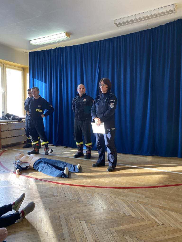Strażacy przeprowadzili pogadankę na temat „Bezpiecznych Ferii” i „Czujka na Straży Twojego Bezpieczeństwa” oraz omówili zasady udzielania kwalifikowanej pierwszej pomocy.