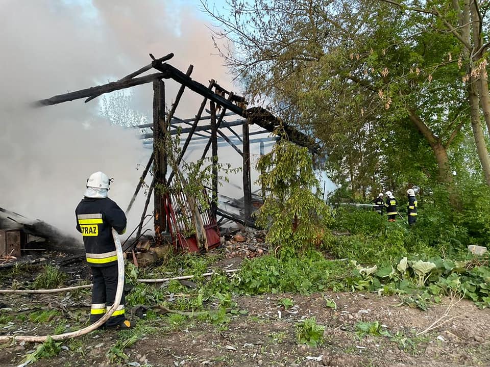 15.05. ok. godz. 4.20 – m. Niedarczów Górny Wieś, gm. Kazanów, pożar drewnianego budynku stodoły,