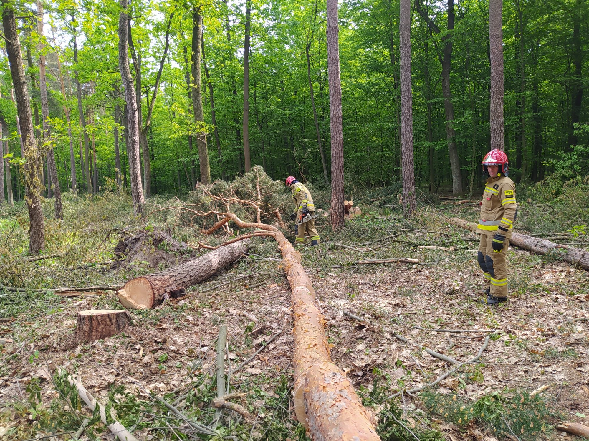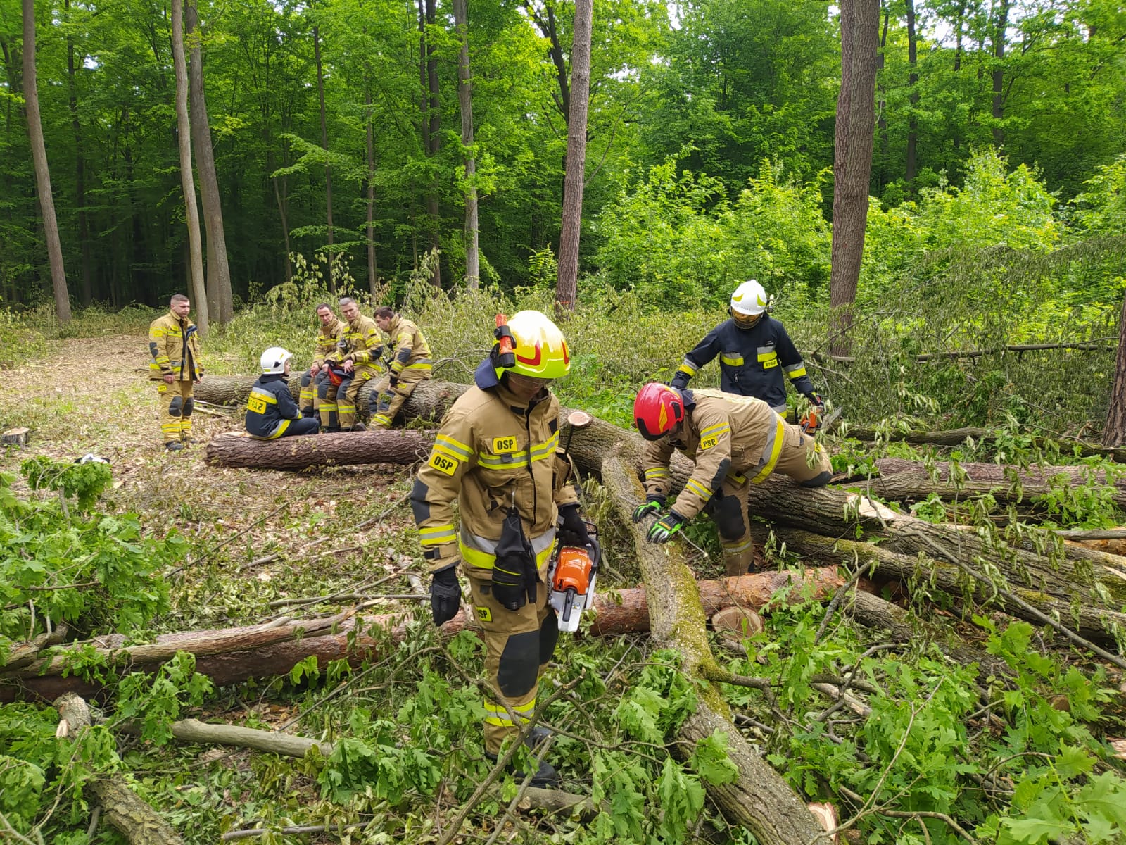 W dniach 23-25 maja 2023r. na wydzielonym terenie Lasów Państwowych podległym Nadleśnictwu Radziwiłłów odbyły się ćwiczenia doskonalące umiejętności posługiwania się pilarkami. Strażacy z powiatu żyrardowskiego ćwiczyli techniki obalania drzew oraz radzenie sobie w trudnych przypadkach np. oparcia drzewa o inne drzewo. W zajęciach wzięły udział wszystkie zmiany służbowe z JRG KP PSP w Żyrardowie oraz zastępy jednostek OSP Wiskitki, OSP Działki, OSP Jesionka, OSP Wręcza, OSP Michałów i OSP Bartniki.