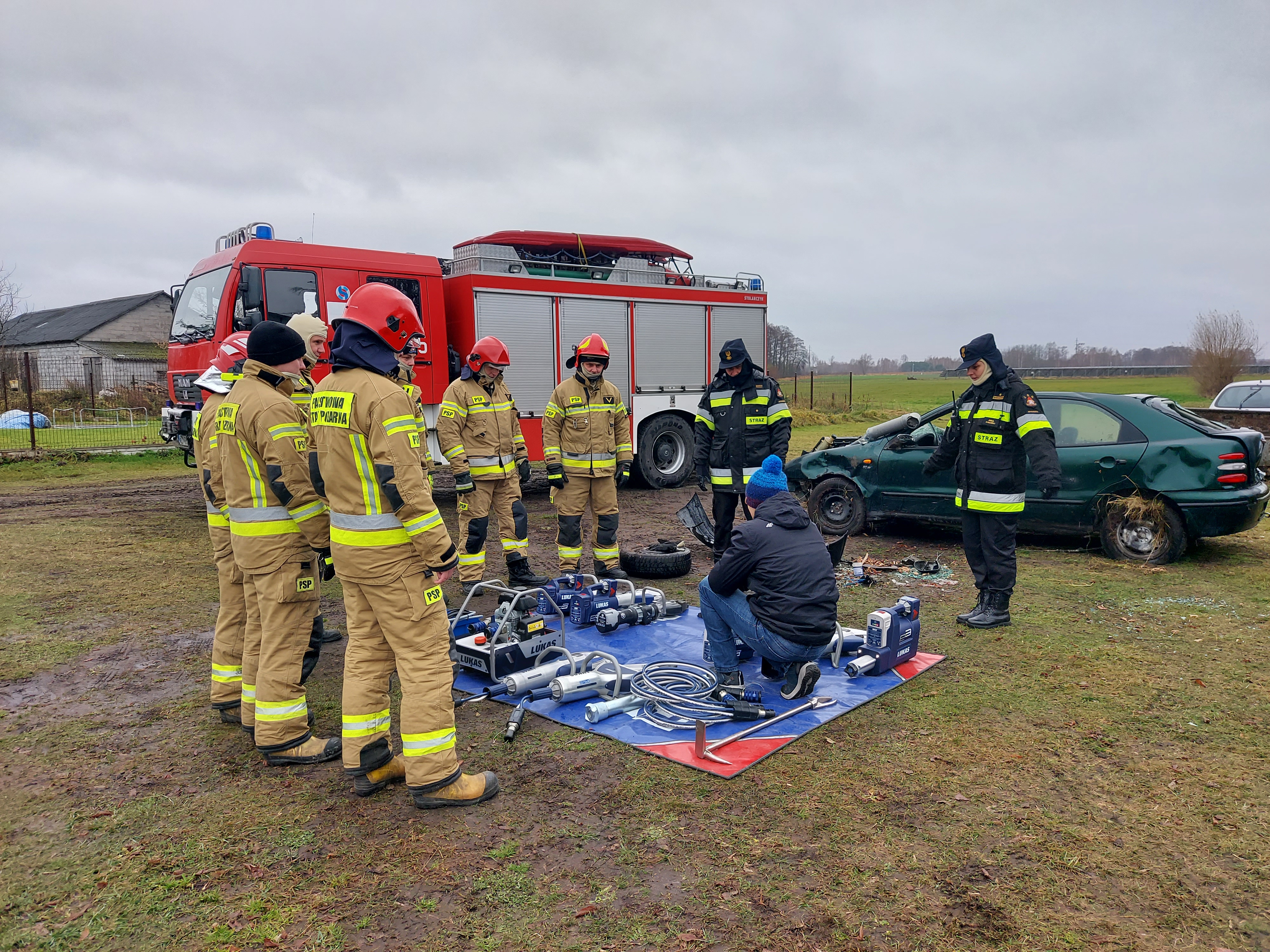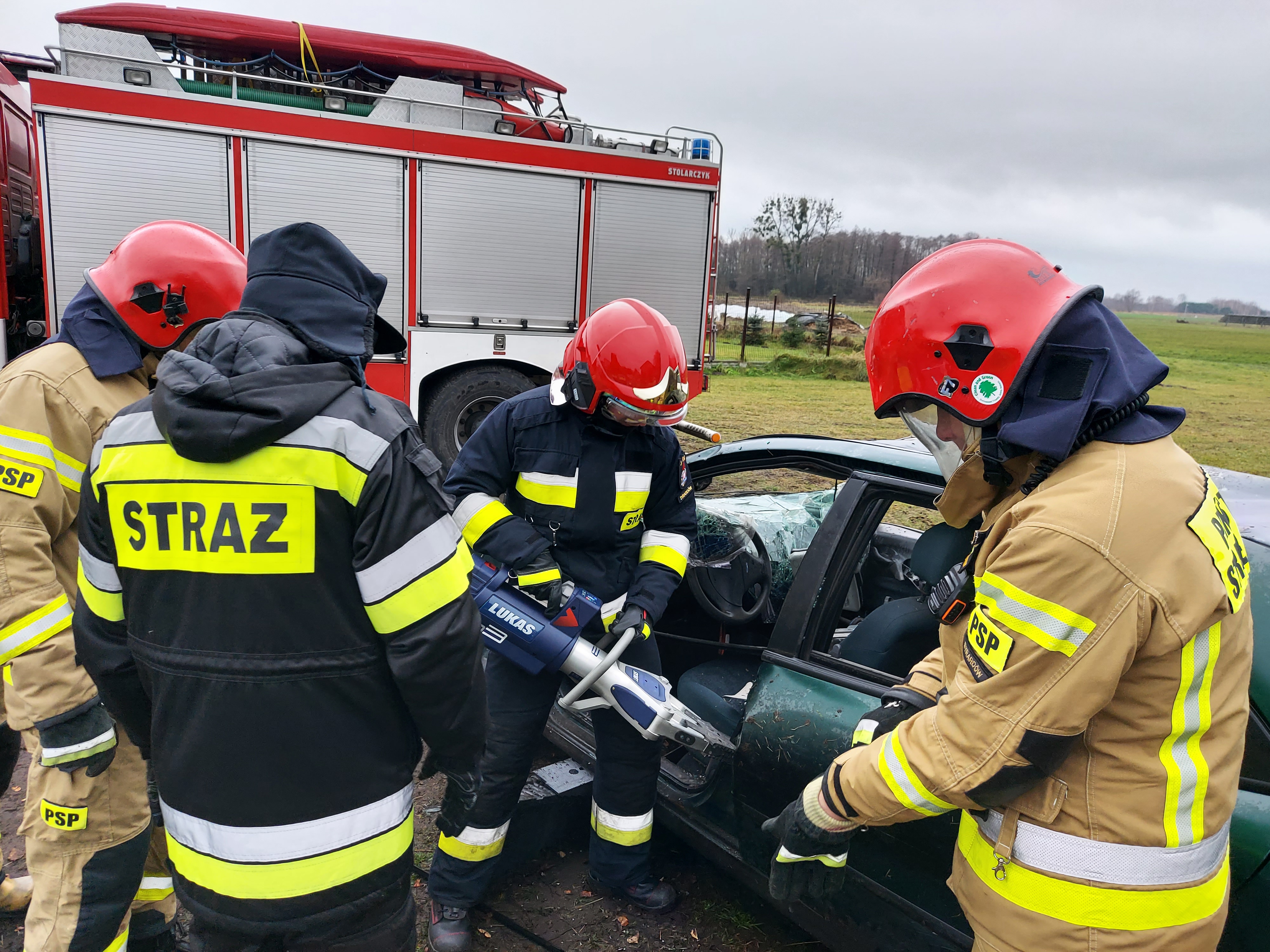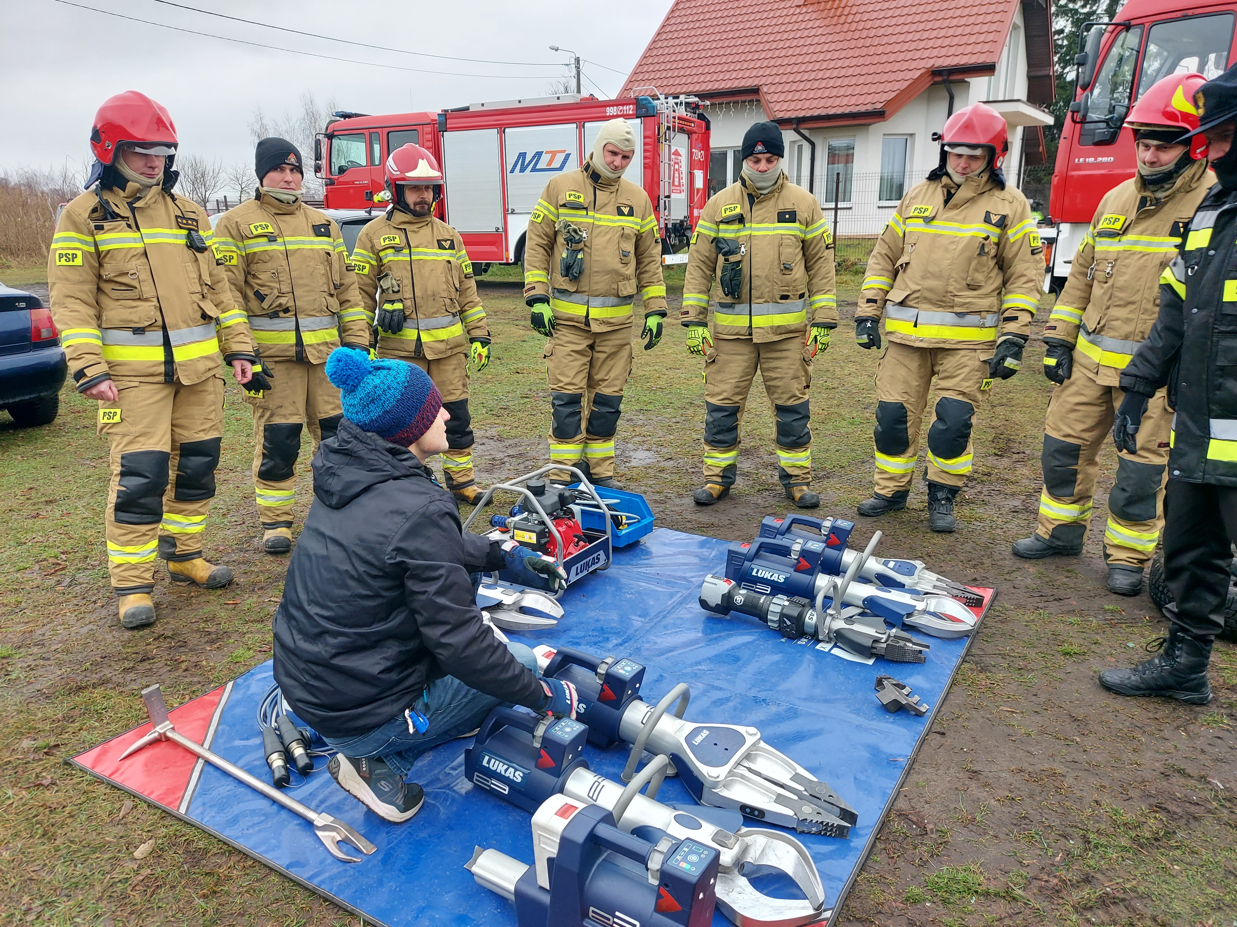 23.11.2021r. żyrardowscy strażacy uczestniczyli w ćwiczeniach z zakrusu ratownictwa technicznego. Dzięki uprzejmości firmy FIRE Max strażacy z JRG Żyrardów zapoznali się z najnowszymi narzędziami akumulatorowymi firmy LUKAS, mieli możliwość przećwiczenia technik wykonywania dostępu do poszkodowanych oraz zapoznania się z nowymi rozwiązaniami w zakresie ratownictwa technicznego.