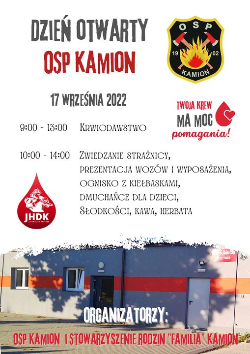 Druhowie z OSP Kamion Zapraszają TWOJA KREW MA MOC POMAGANIA