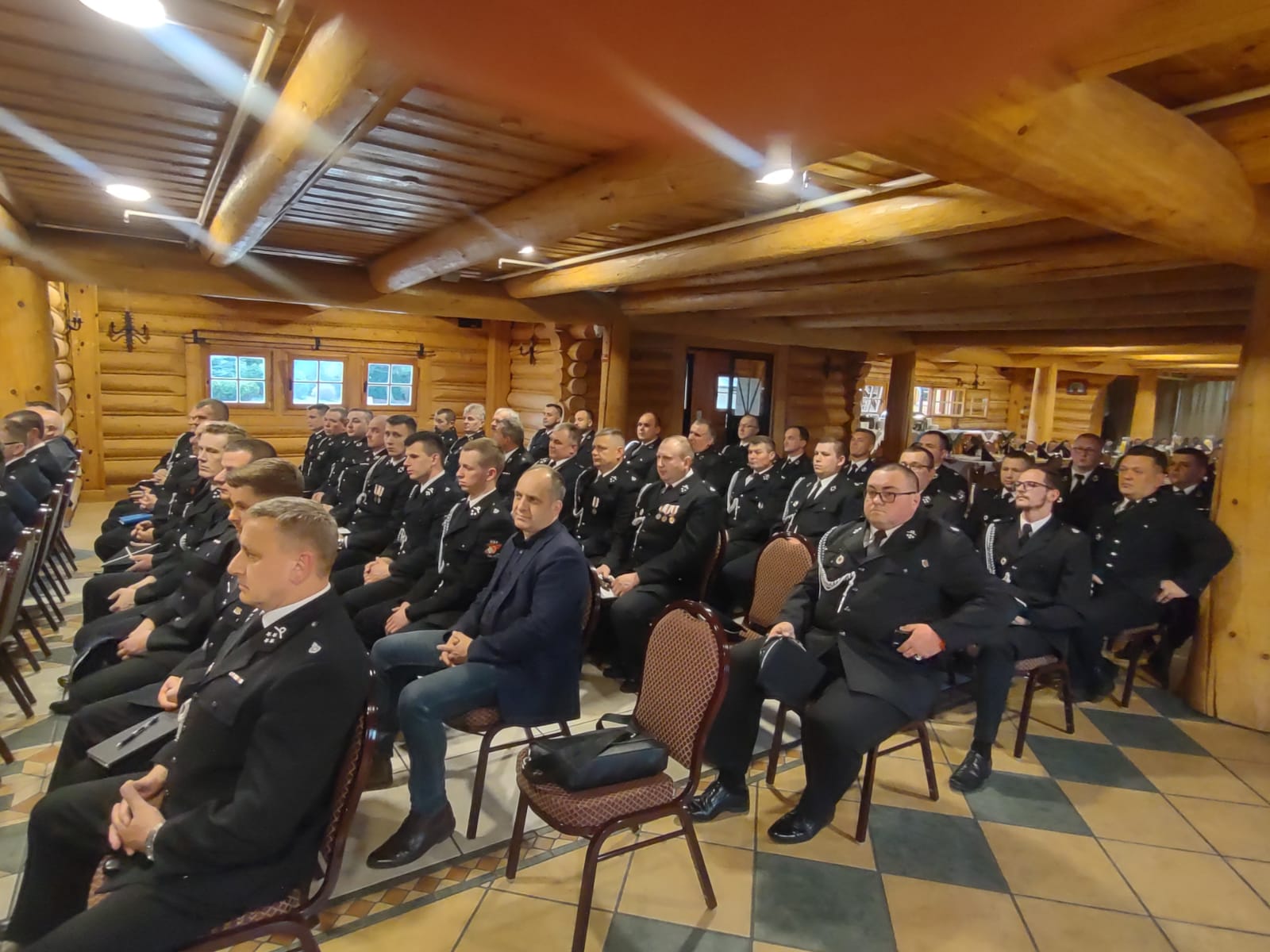 Zastępca Mazowieckiego Komendanta Wojewódzkiego PSP – koordynator ds. OSP st. bryg. Tomasz Cybul przedstawił uczestnikom spotkania realizację zagadnień, dotyczących zapisów ustawy o ochotniczych strażach pożarnych, w tym procedowanych zmian, a także plany w zakresie doposażenia jednostek OSP w pojazdy i sprzęt pożarniczy oraz prowadzoną na rzecz druhów działalność szkoleniową. Podziękował przedstawicielom jednostek Ochotniczych Straży Pożarnych za ich trud, zaangażowanie i poświęcenie na rzecz ochrony przeciwpożarowej na Mazowszu. St. bryg. Tomasz Cybul złożył również życzenia w imieniu Pana Macieja Małeckiego Sekretarza Stanu w Ministerstwie Aktywów Państwowych oraz Komendanta Głównego PSP gen. brygadiera Andrzeja Bartkowiaka, dziękując strażakom za ich poświęcenie oraz podkreślając, jak ważną rolę odgrywają ochotnicze straże pożarne w systemie bezpieczeństwa kraju.