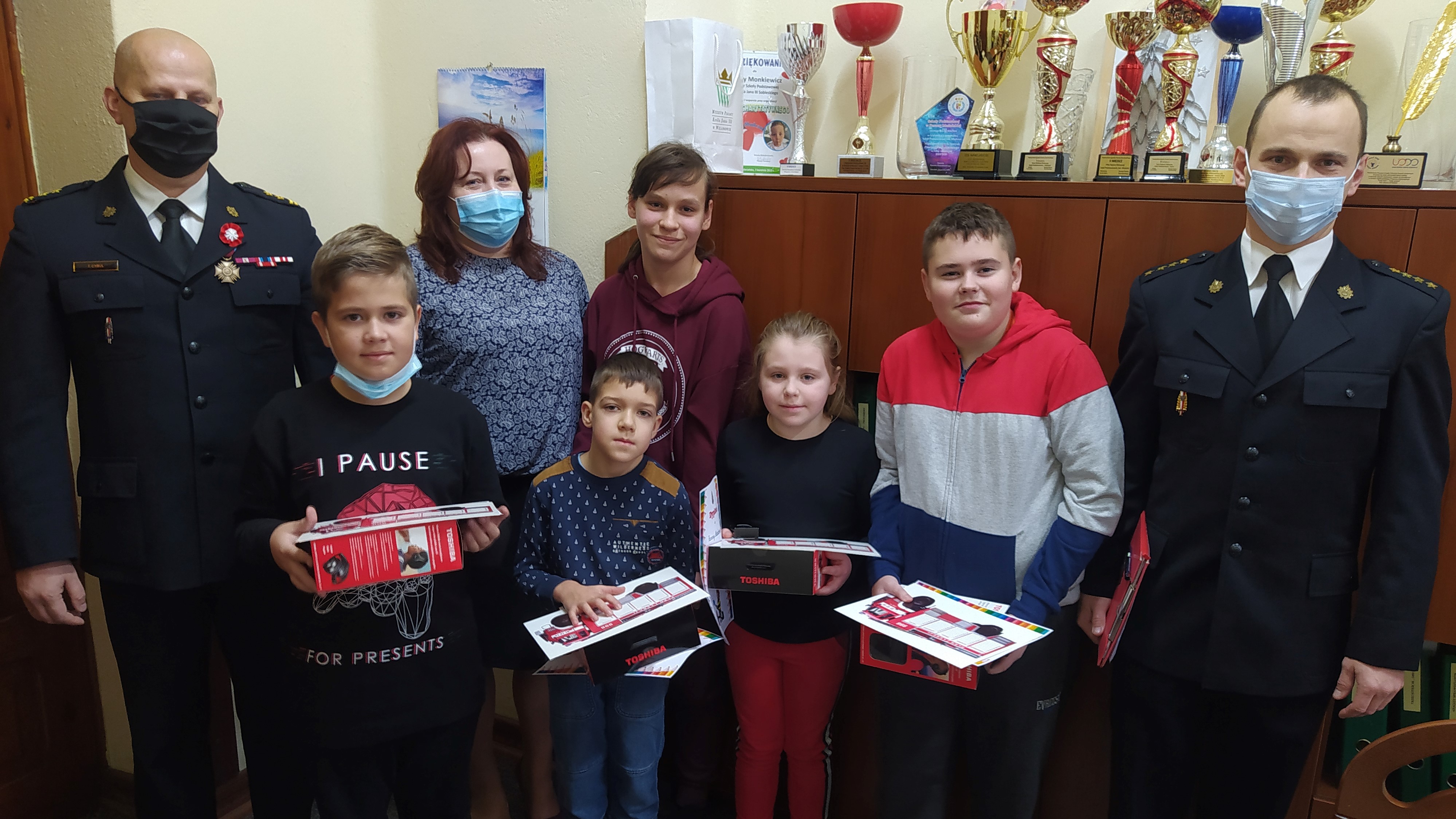 7 grudnia 2021 roku komendant powiatowy PSP w Żyrardowie bryg. Tomasz Cybul wraz z przewodniczącym komisji konkursowej st. kpt. Jarosławem Beliną wręczyli zwycięzcom pamiątkowe dyplomy oraz nagrody. Zwycięzcom konkursu składamy serdeczne gratulacje! Na ręce wszystkich autorów prac składamy podziękowanie za poświęcony czas i trud włożony w powstanie prac.