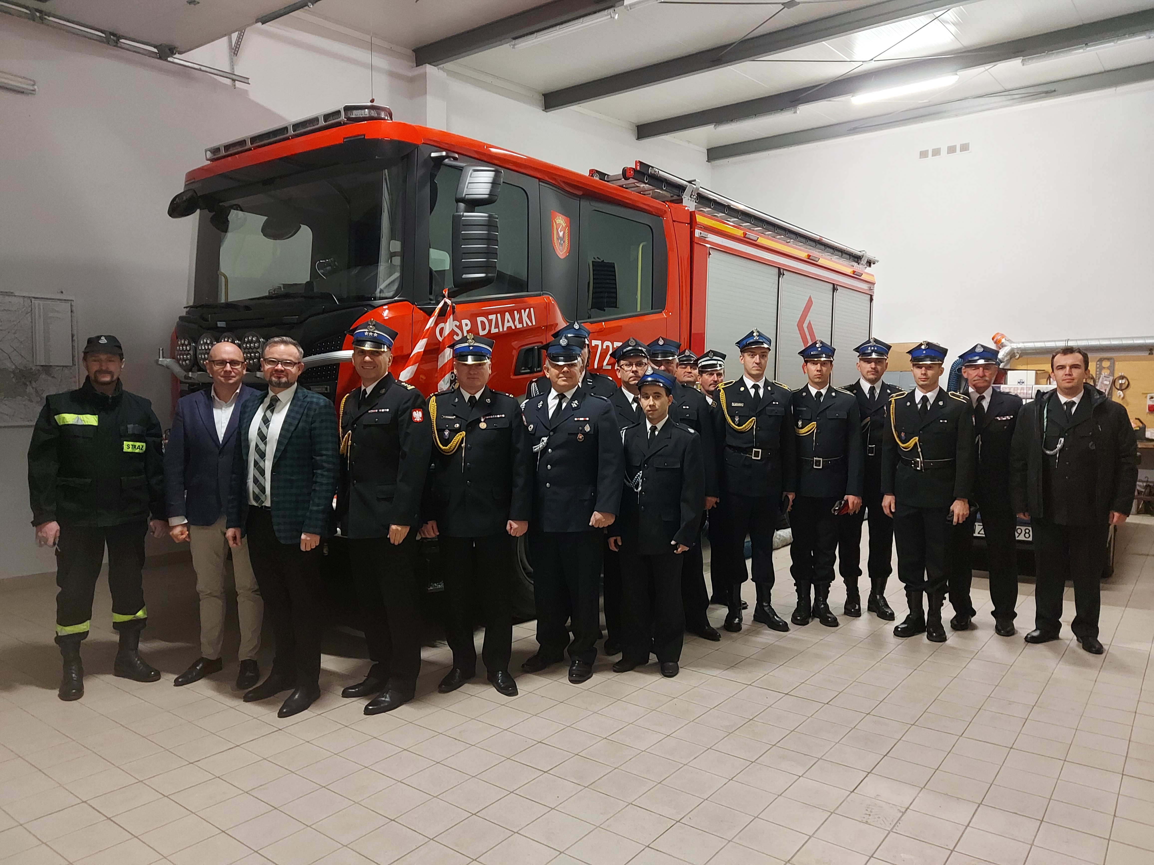 Pierwszego dnia grudnia, w piątkowy wieczór miało miejsce wielkie wydarzenie dla strażaków z Ochotniczej Straży Pożarnej w Działkach. Po raz pierwszy w trakcie 60 letniej działalności OSP Działki udało im się pozyskać fabrycznie nowy samochód ratowniczo - gaśniczy, jakim jest Scania GBA 2,5/27/4,8, pojazd terenowy, który zastąpi wyeksploatowany już poprzedni pojazd marki Star .