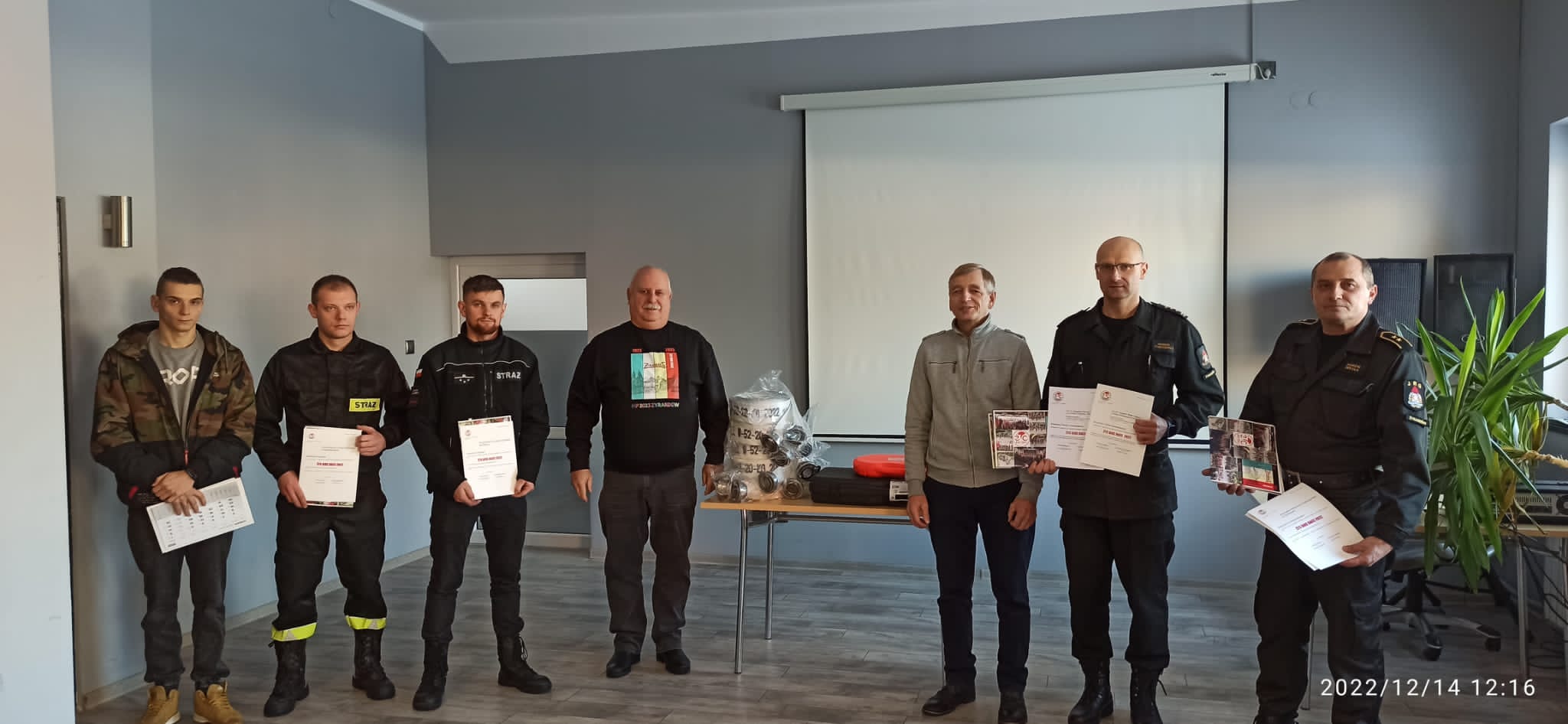 Spotkanie miało na celu podziękowanie funkcjonariuszom Komendy oraz druhom OSP za udział w zabezpieczeniu finału cyklu wyścigów kolarskich oraz biegów ulicznych „Żyrardów w Biegu 2022”, które odbyły się w Żyrardowie 28 sierpnia 2022 roku. Była to impreza sportowa, wymagająca dużego zaangażowania w zapewnienie bezpieczeństwa na trasie wyścigów. Za organizację zabezpieczenia odpowiedzialny był zastępca dowódcy JRG st. asp. Marcin Sekuła, a udział w nim brały jednostki OSP z Radziejowic, Wręczy oraz Żyrardowa. Prezes Zarządu Żyrardowskiego Towarzystwa Cyklistów Pan Kazimierz Kwiatkowski oraz Wiceprezes Pan Wojciech Pawelec, doceniając zaangażowanie i profesjonalizm strażaków, przekazali na rzecz jednostek biorących udział w organizacji imprezy sprzęt ratowniczy.