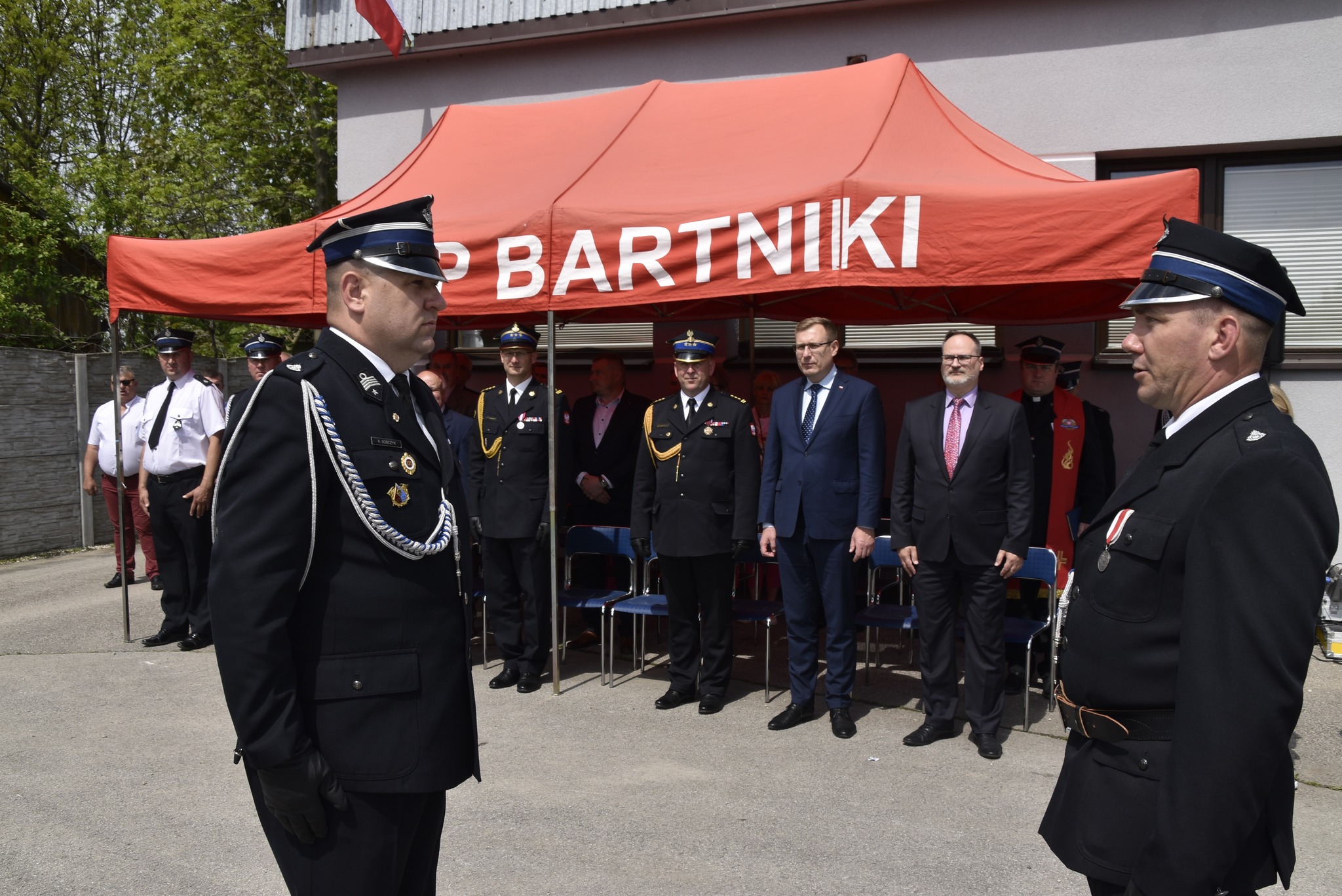 Uroczysty apel rozpoczął się od złożenia meldunku przez dowódcę uroczystości członkowi Zarządu Oddziału Wojewódzkiego ZOSP RP Województwa Mazowieckiego dh. Krzysztofowi Sobczykowi. Następnie podniesiono flagę związkową na maszt. W dalszej części uroczystości Prezes Ochotniczej Straży Pożarnej w Bartnikach dh Krzysztof Sobczyk powitał zaproszonych gości.