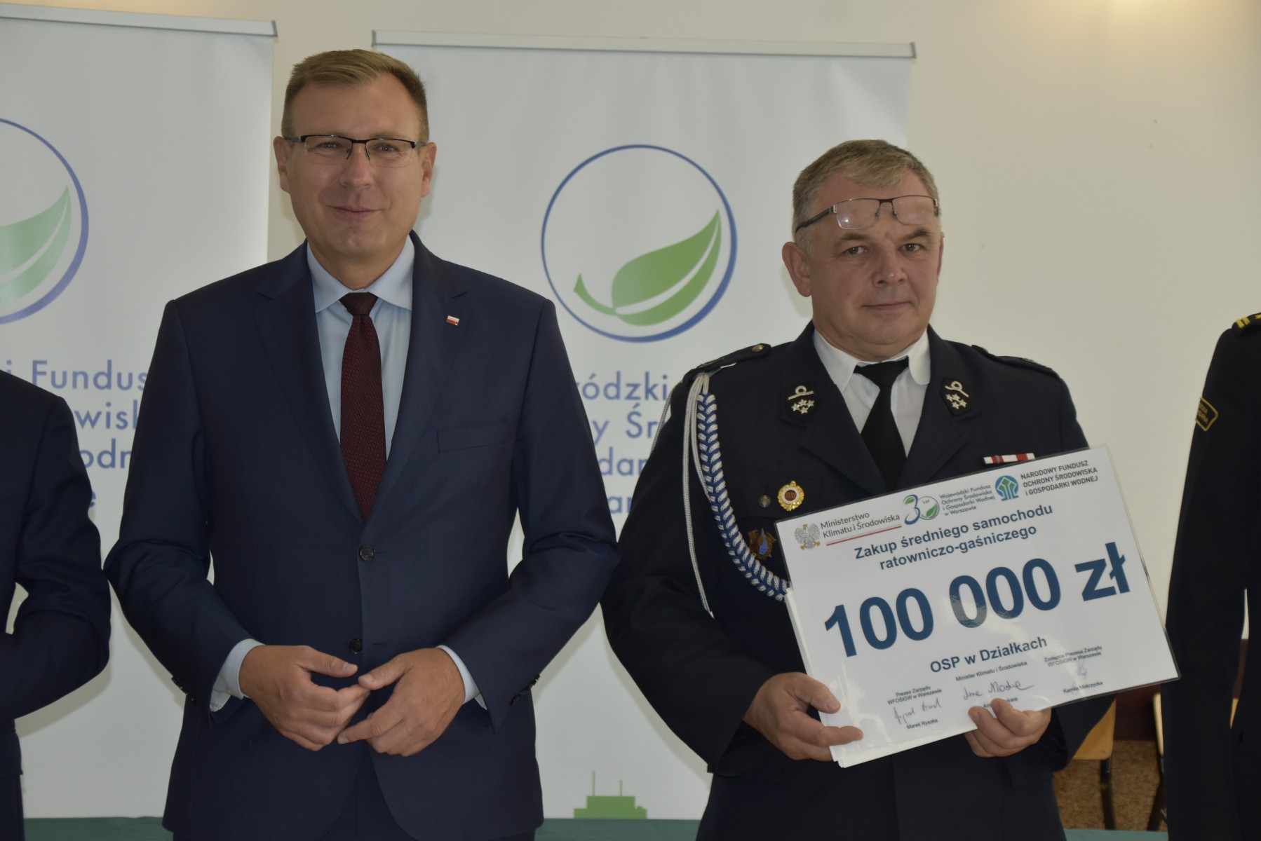 W uroczystości podpisania i wręczenia umów wzieli udział: Maciej Małecki sekretarz stanu w Ministerstwie Aktywów Państwowych, Jacek Ozdoba sekretarz stanu w Ministerstwie Klimatu i Środowiska, Marek Ryszka prezes Wojewódzkiego Funduszu Ochrony Środowiska i Gospodarki Wodnej st. bryg. Mariusz Tymoszewicz Komendant Powiatowy Państwowej Straży Pożarnej w Żyrardowie wraz ze swoim Zastępcą mł. bryg. Markiem Krawczykiem, Przedstawiciele Urzędów Miast i Gmin z terenu powiatu żyrardowskiego, druhny i druhowie Ochotniczych Straży Pożarnych z terenu powiatu żyrardowskiego.