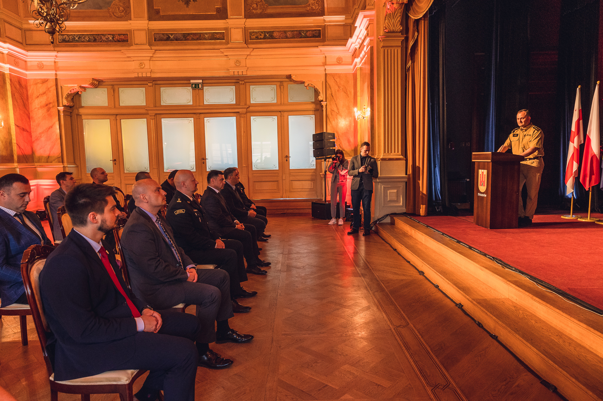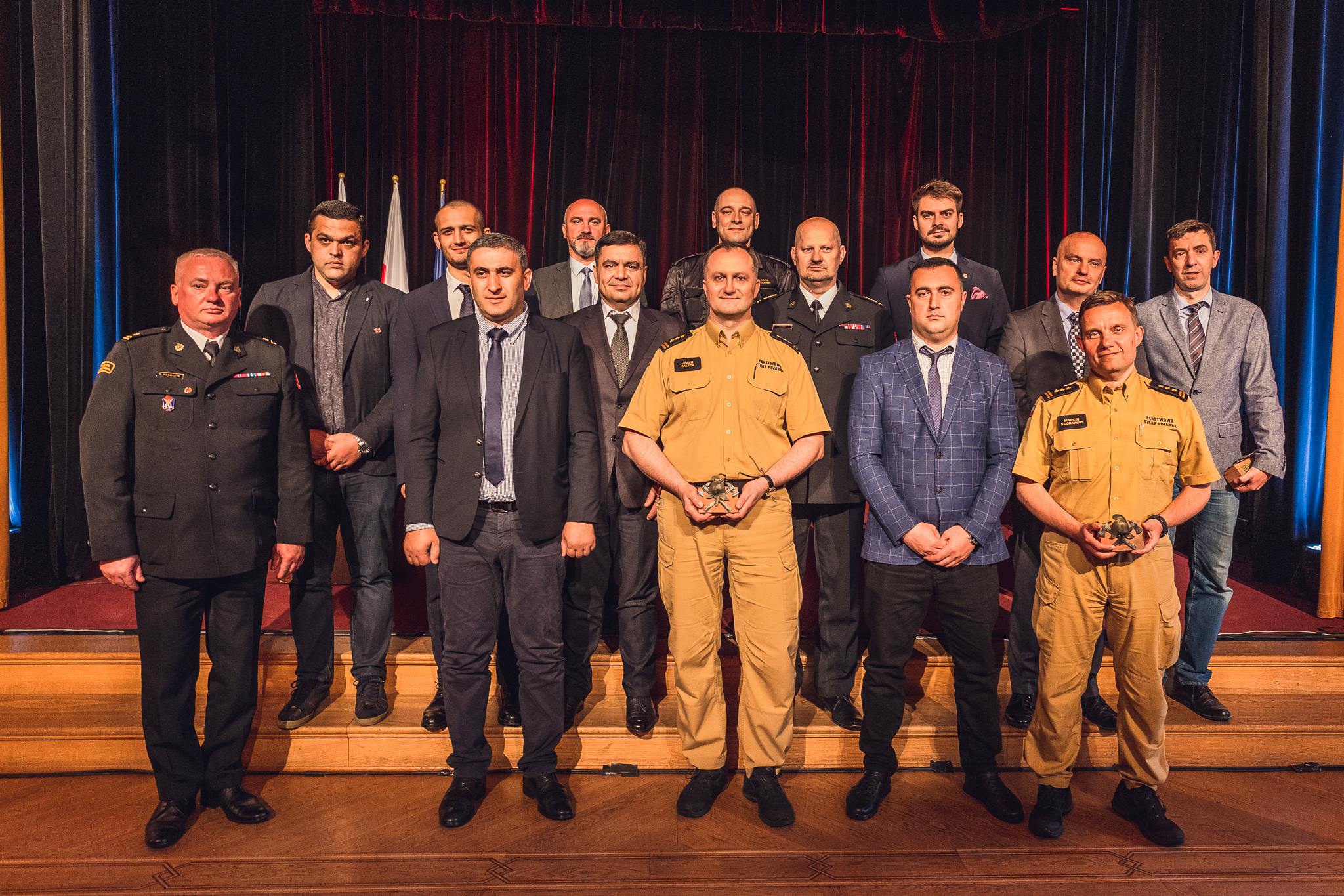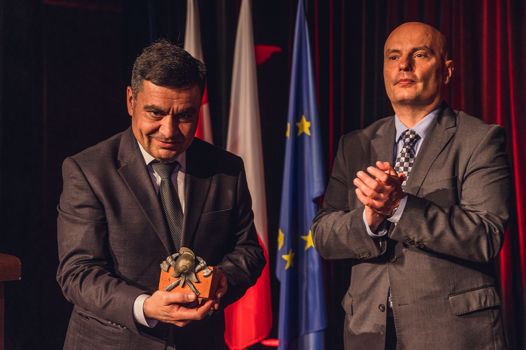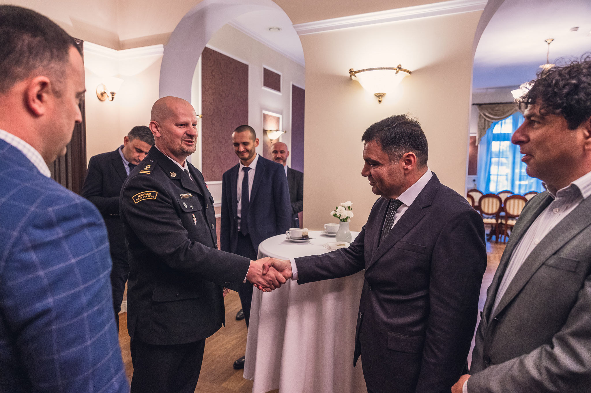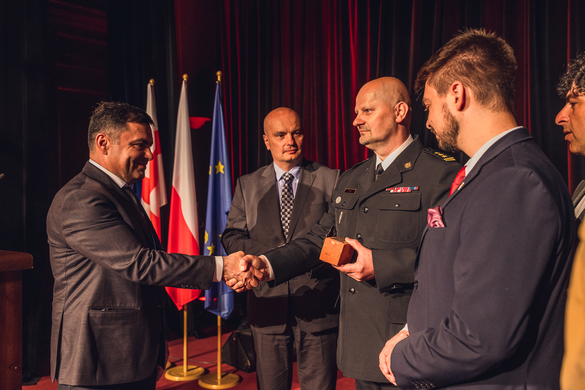Na zakończenie wizyty przedstawiciele Służby Zarządzania Kryzysowego MSW Gruzji zostali zaproszeni do żyrardowskiej Resursy, gdzie miało miejsce podsumowanie pobytu, podziękowania i gratulacje. Komendant powiatowy PSP w Żyrardowie st. bryg. Tomasz Cybul wręczył szanownym gościom pamiątkowe statuetki w formie oryginalnych czerwonych cegieł pochodzących z żyrardowskich budynków. Cegły ozdobione zostały żelazną, ręcznie wykuwaną, kompozycją dwóch skrzyżowanych toporków i hełmu strażackiego oraz tabliczką z dedykacją.