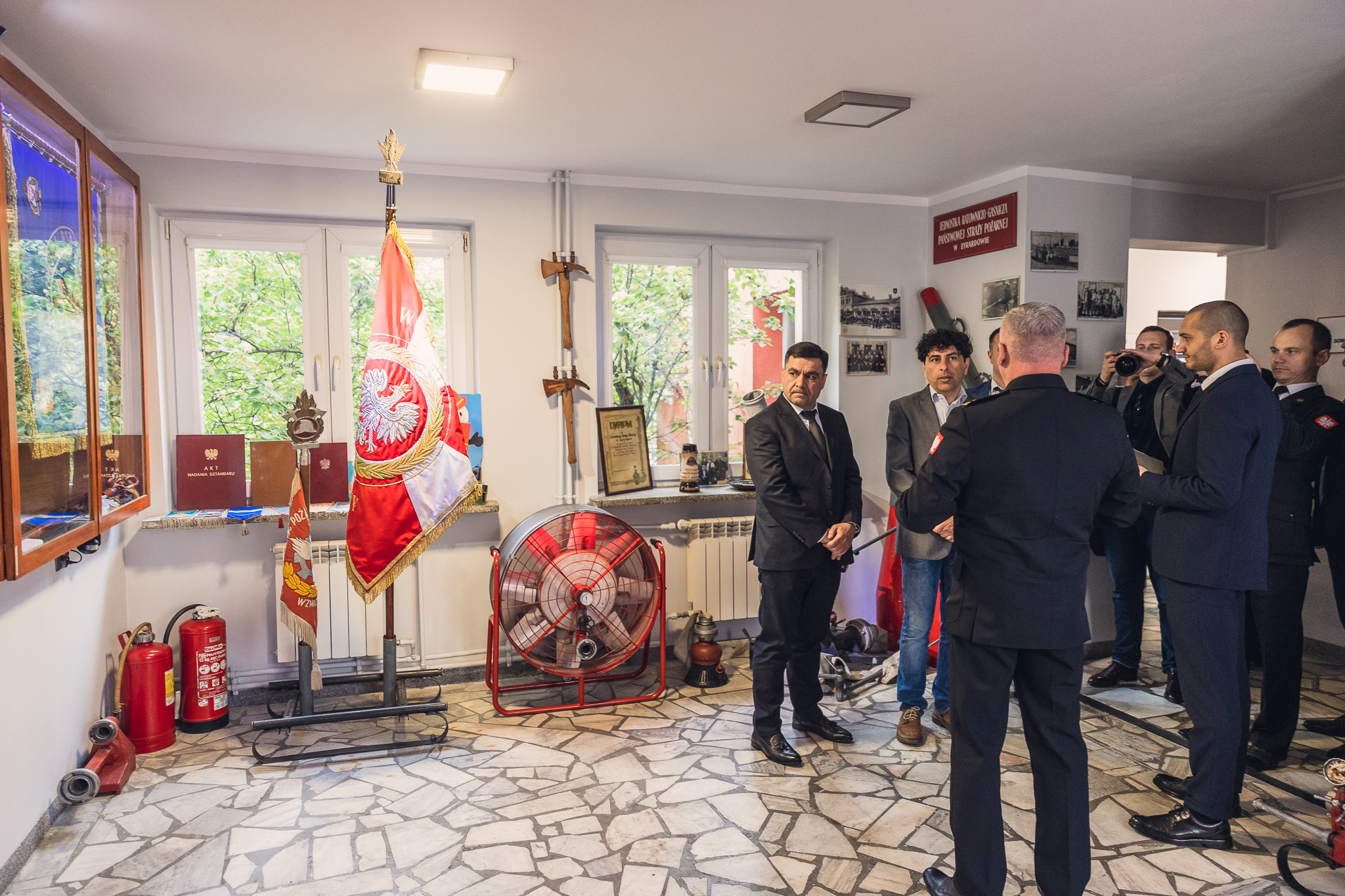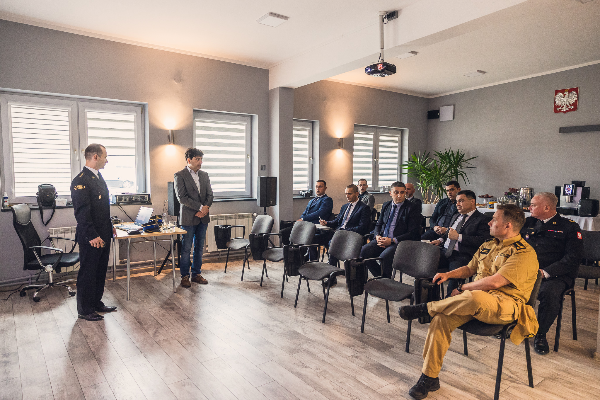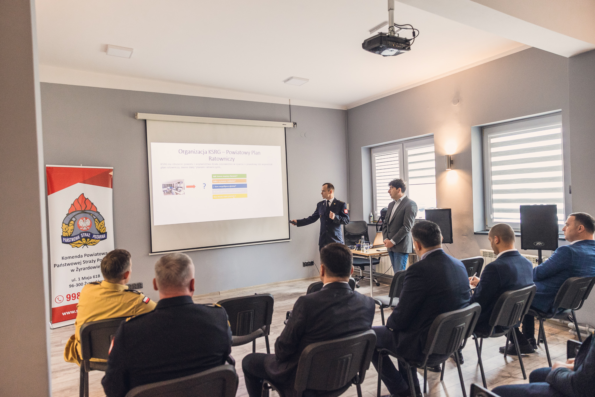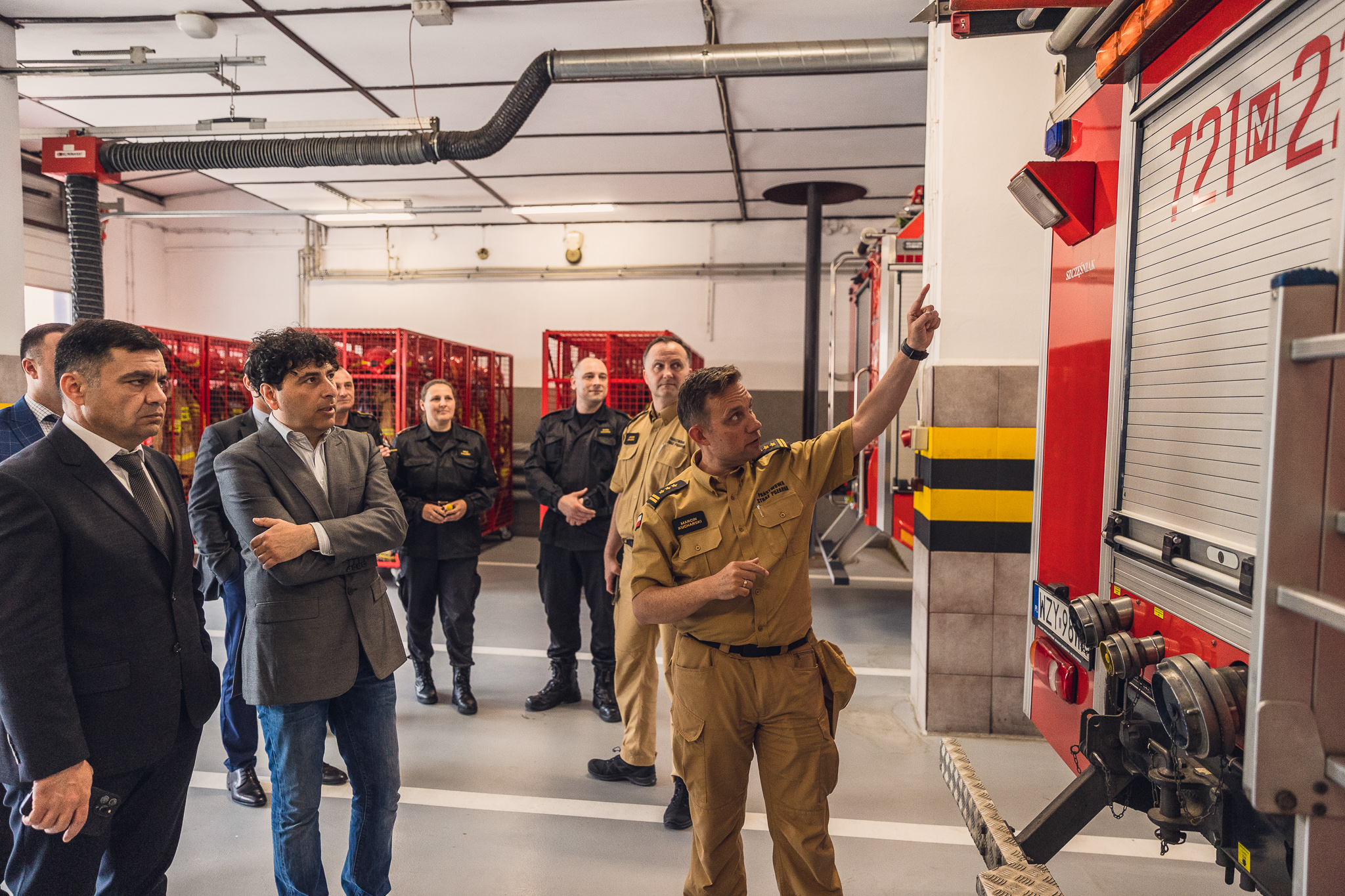 Wizyta rozpoczęła się od prelekcji w siedzibie Komendy Powiatowej PSP w Żyrardowie, którą prowadził st. kpt. Jarosław Belina. Następnie delegaci zwiedzili strażnicę, zapoznając się z mechanizmami koordynacji krajowego systemu ratowniczo-gaśniczego na poziomie powiatowym, w tym organizacją i zadaniami Stanowiska Kierowania Komendanta Powiatowego, wyposażeniem i działaniami Jednostki Ratowniczo-Gaśniczej. Podczas pobytu zorganizowano próbny alarm, prezentując, tym samym, w jaki sposób zastępy są dysponowane i w jak wygląda wyjazd do zdarzenia.