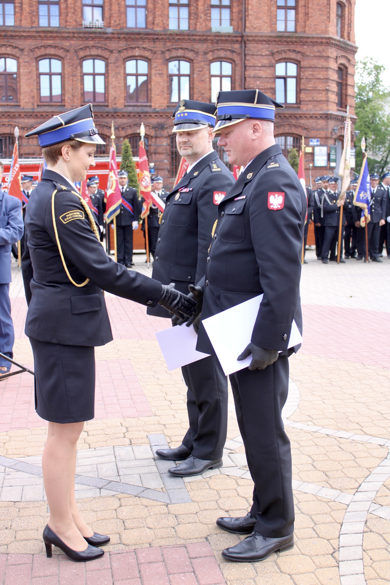 Akty nadania wyższych stopni służbowych wręczył przedstawiciel mazowieckiego komendanta wojewódzkiego Państwowej Straży Pożarnej kpt. Elżbieta Adamus-Kot w asyście komendanta powiatowego Państwowej Straży Pożarnej st. bryg. Tomasza Cybul.