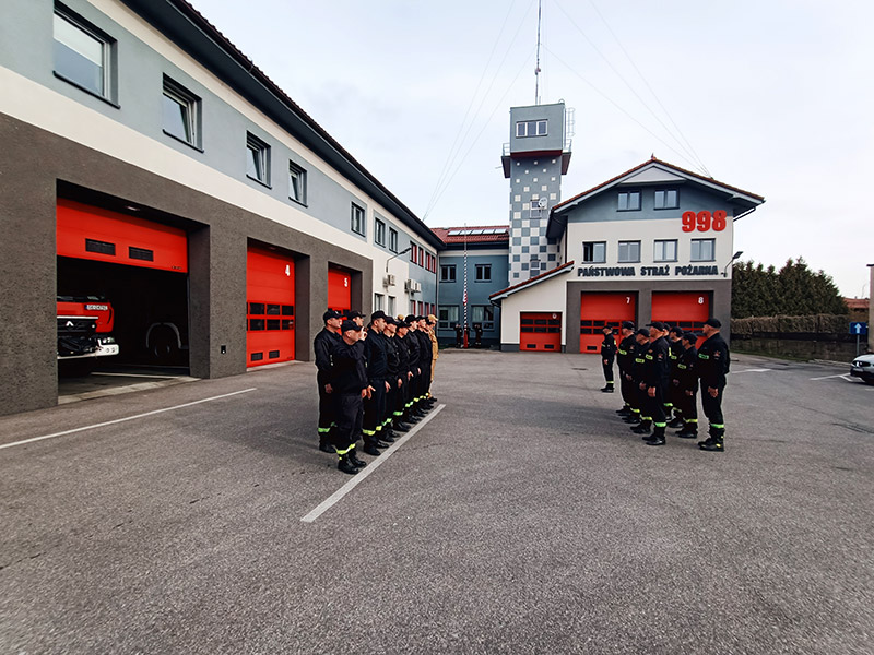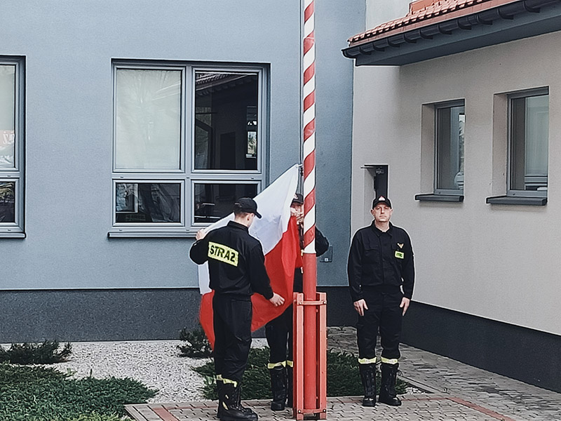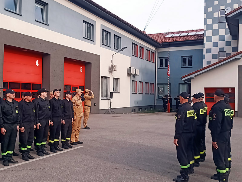 Uroczyste podniesienie flagi państwowej na maszt oraz odśpiewanie hymnu. Tak żywieccy strażacy uczcili 2 maja – Dzień Flagi Rzeczypospolitej Polskiej.