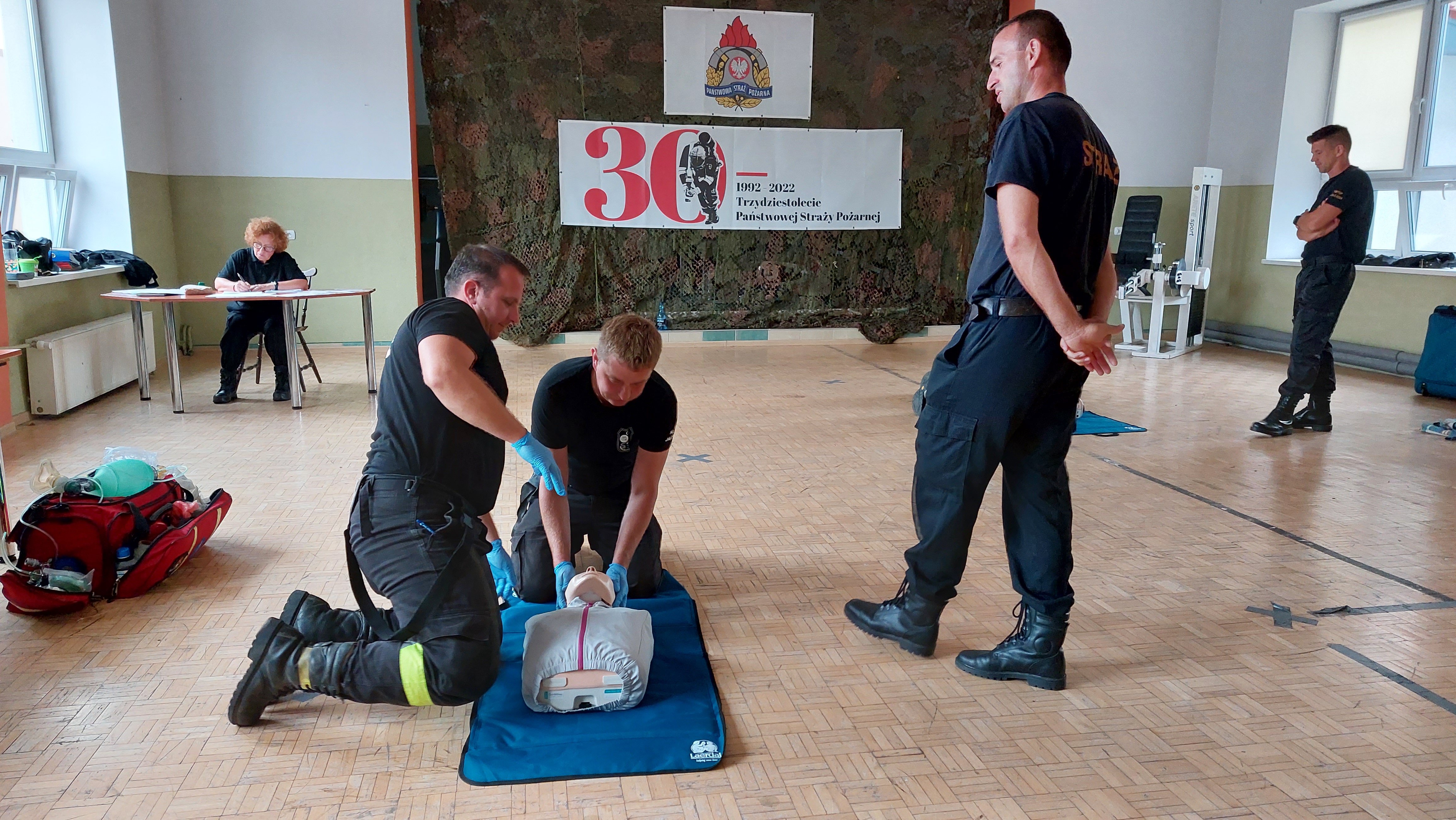 Egzamin przeprowadziła komisja powołana przez Śląskiego Komendanta Wojewódzkiego PSP w składzie: st. kpt. Jolanta Towarek – wojewódzki koordynator ratownictwa medycznego KW PSP w Katowicach, asp. Zbigniew Gąsiorkiewicz – powiatowy koordynator ratownictwa medycznego KP PSP w Wodzisławiu Śląskim. i asp. Sebastian Domański – miejski koordynator ratownictwa medycznego KM PSP w Rudzie Śląskiej.