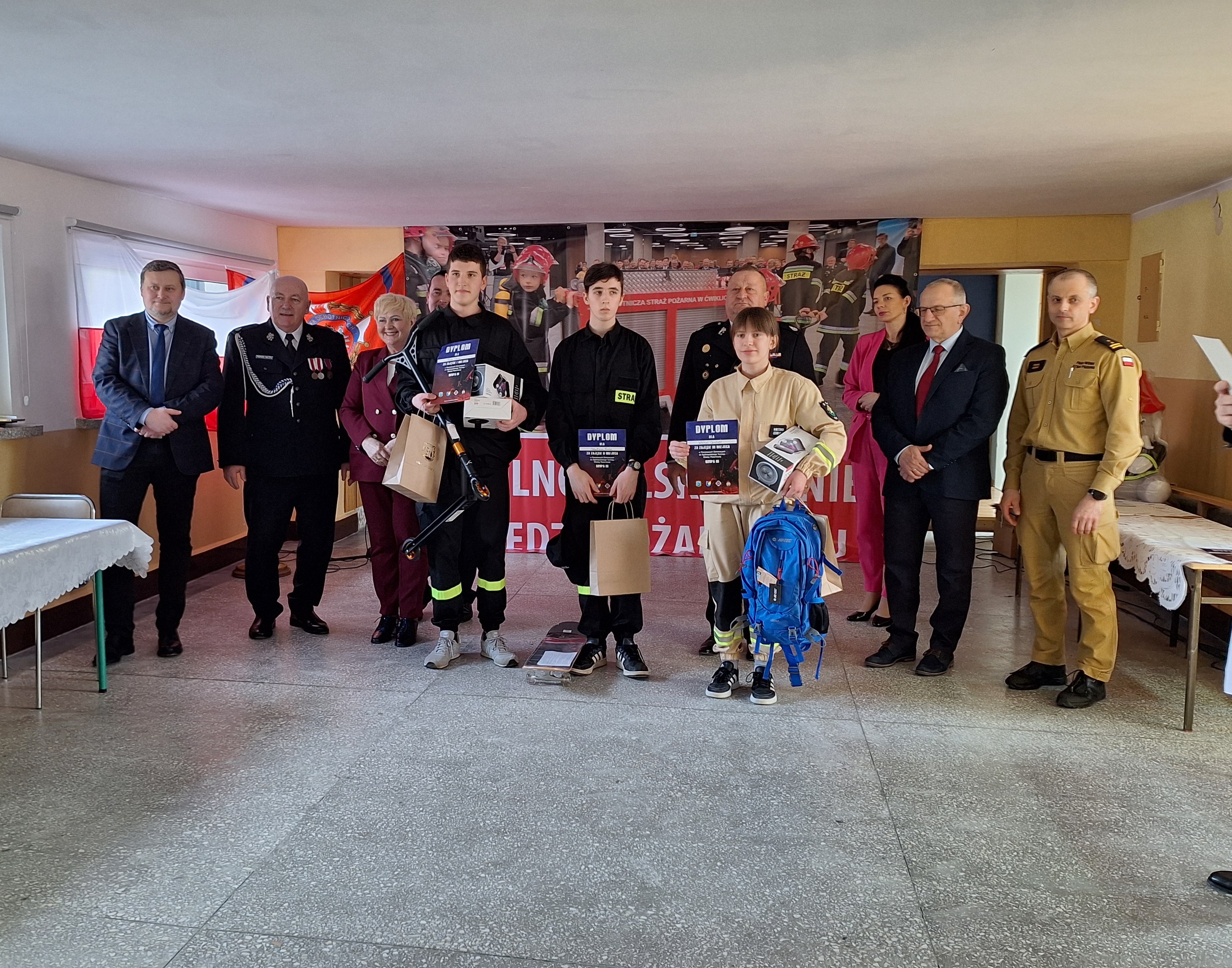 Wszyscy uczestnicy eliminacji powiatowych do Ogólnopolskiego Turnieju Wiedzy Pożarniczej otrzymali dyplomy za udział, a zwycięzcy otrzymali dyplomy oraz nagrody rzeczowe.