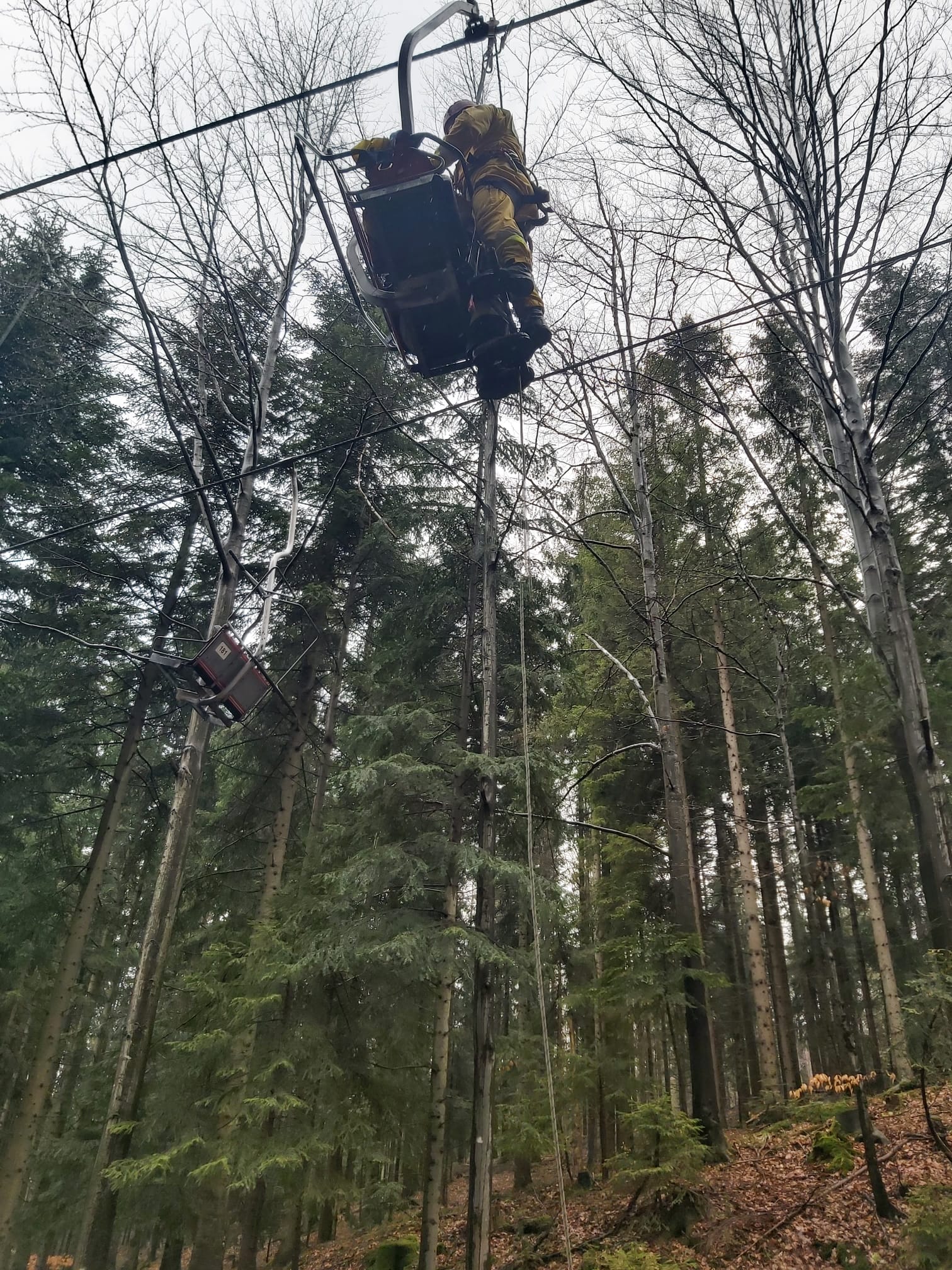 W dniu 19 kwietnia 2023 r. około godziny 10.00 stanowisko kierowania komendanta powiatowego PSP w Żywcu otrzymało informację o awaryjnym zatrzymaniu się kolejki krzesełkowej „Korbielów – Szczawiny”. Kilkanaście osób zostało uwięzionych na krzesełkach w trudnym terenie górskim.