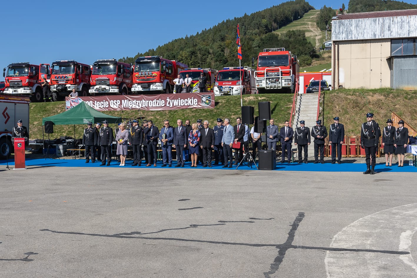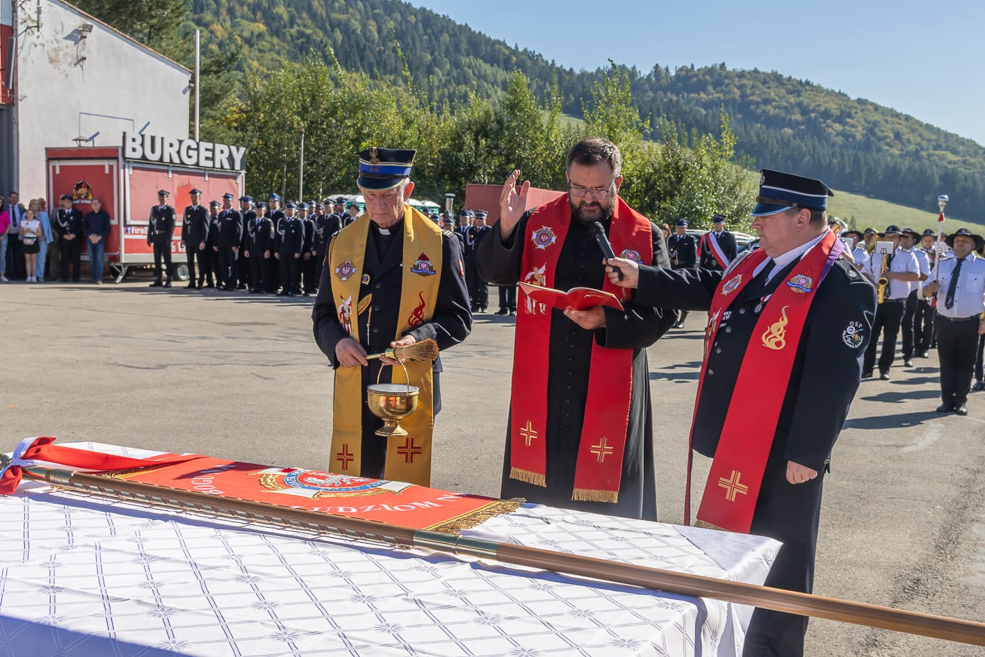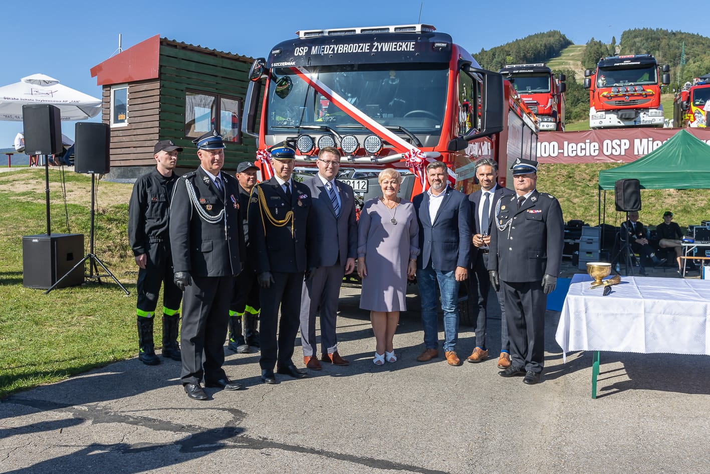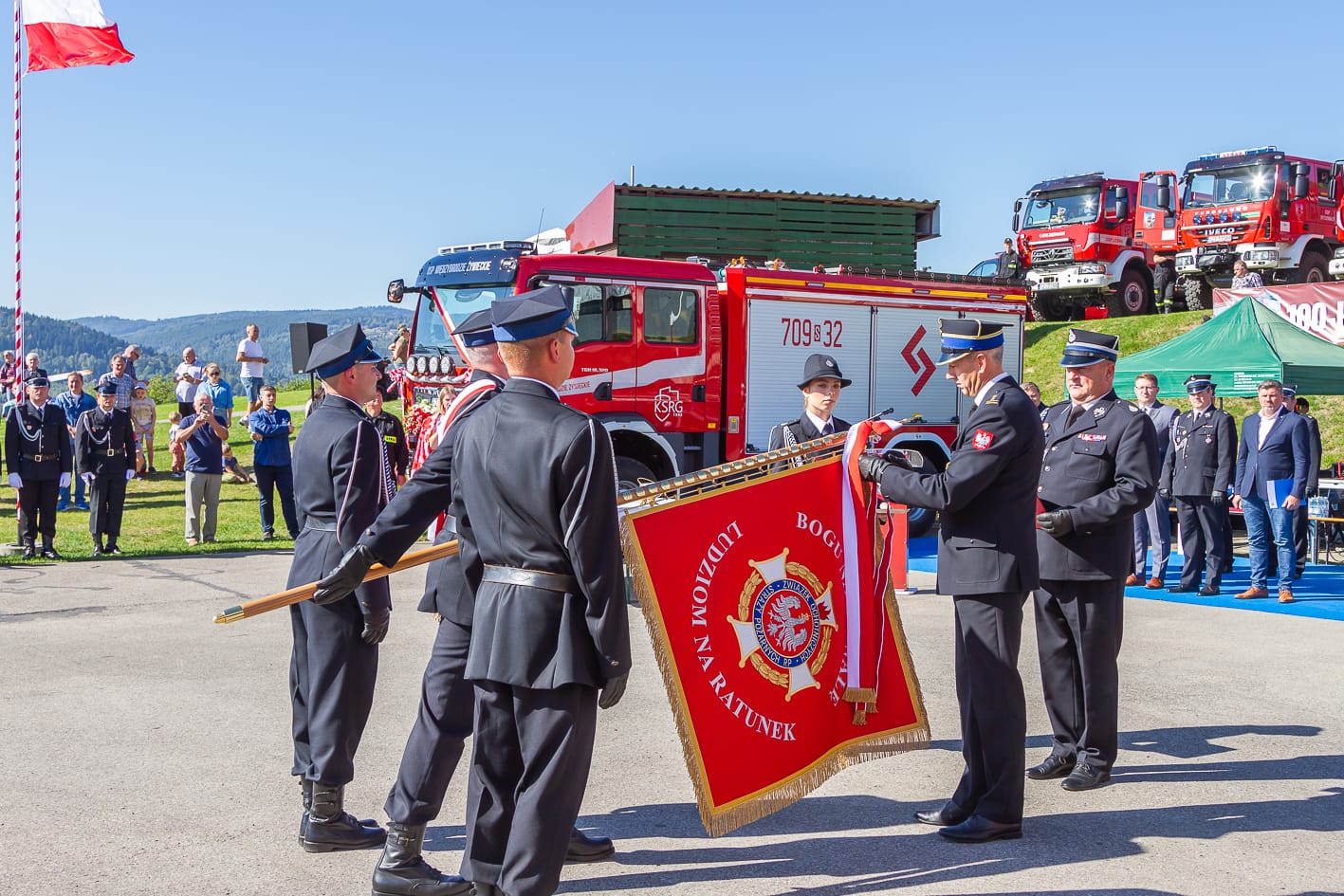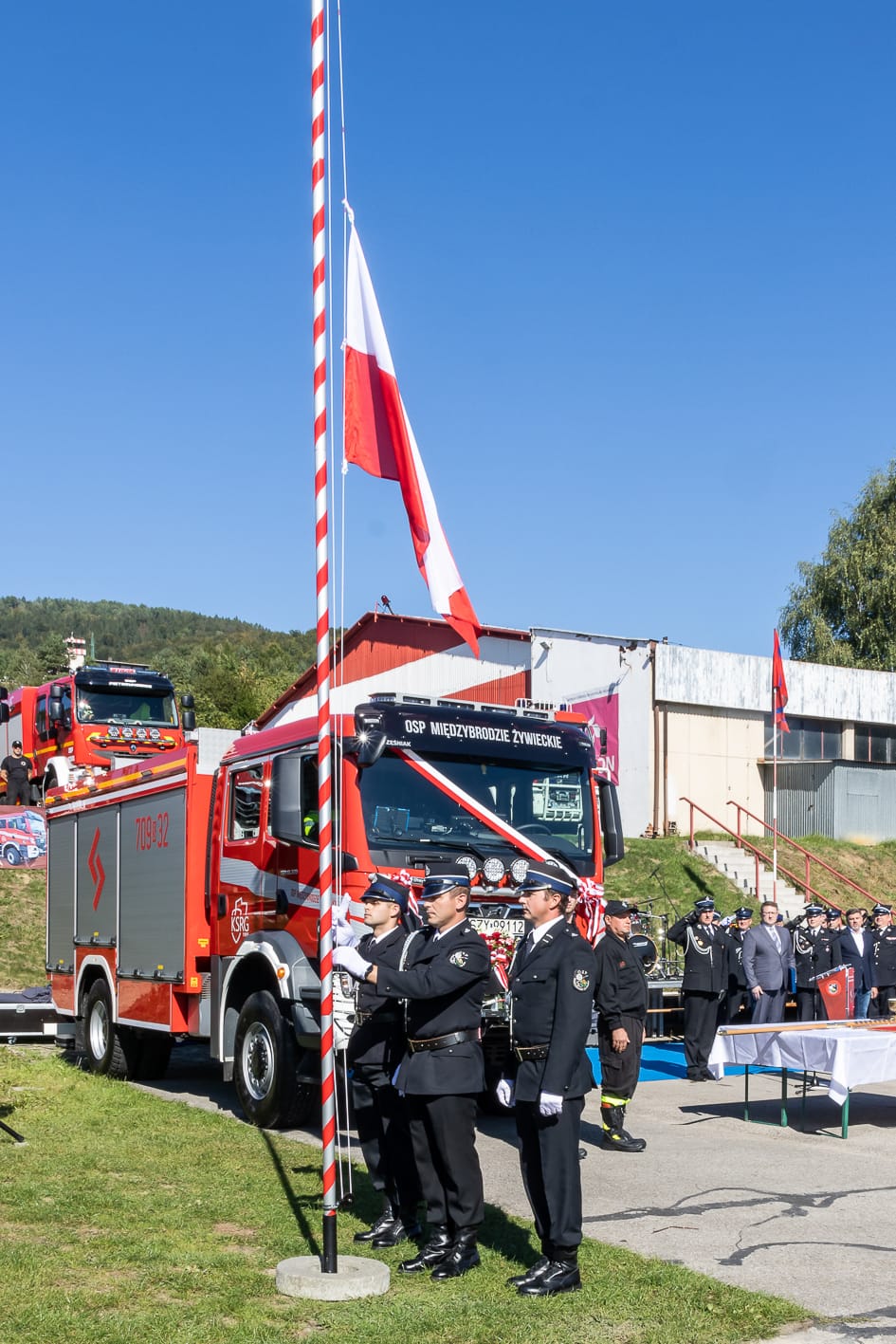 Kolejnym punktem uroczystości było przekazanie nowego sztandaru dla jednostki, wręczenie odznaczeń i wyróżnień zasłużonym druhom oraz dokonanie przekazania samochodu. Złotym znakiem Związku OSP RP odznaczoną została jednostka OSP Międzybrodzie Żywieckie.