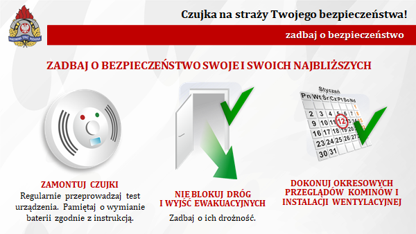 Systematycznie czyścić, sprawdzać szczelność, wykonywać przeglądy techniczne przewodów kominowych. Użytkować tylko sprawne techniczne urządzenia, zgodnie z instrukcją producenta. Nie zasłaniać i nie przykrywać urządzeń grzewczych. Nie zaklejać i nie zasłaniać kratek wentylacyjnych.