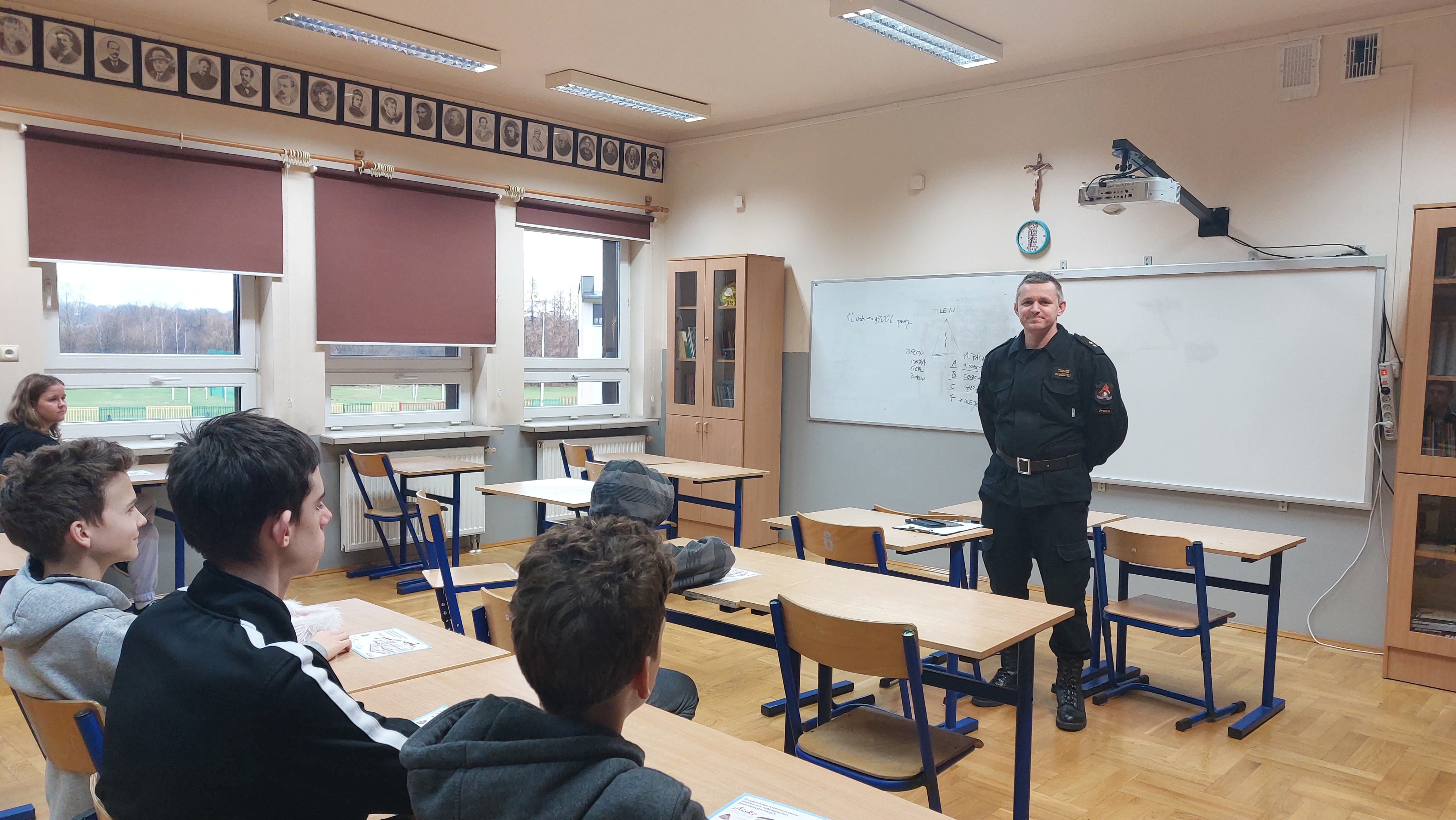 W dniu 6 grudnia 2022 roku strażacy z Komendy Powiatowej PSP w Żywcu wzięli udział w realizacji programu edukacyjnego „Bądźmy wrażliwi na innych”. Organizatorem przedsięwzięcia była Szkoła Podstawowa im. Jana Klicha w Wieprzu. W ramach spotkania z dziećmi i młodzieżą strażacy przeprowadzili prelekcje na temat „Czad – cichy zabójca” oraz „Udzielanie pierwszej pomocy w sytuacjach zagrażających życiu”. Zajęcia oraz prezentacje prowadzone były wspólnie z druhami z OSP Wieprz, przedstawicielem Beskidzkiej Grupy Górskiego Ochotniczego Pogotowia Ratunkowego w Szczyrku oraz funkcjonariuszami z Placówki Straży Granicznej w Bielsku-Białej. Mamy nadzieję, że przekazana wiedza zwiększy świadomość wśród dzieci i młodzieży.