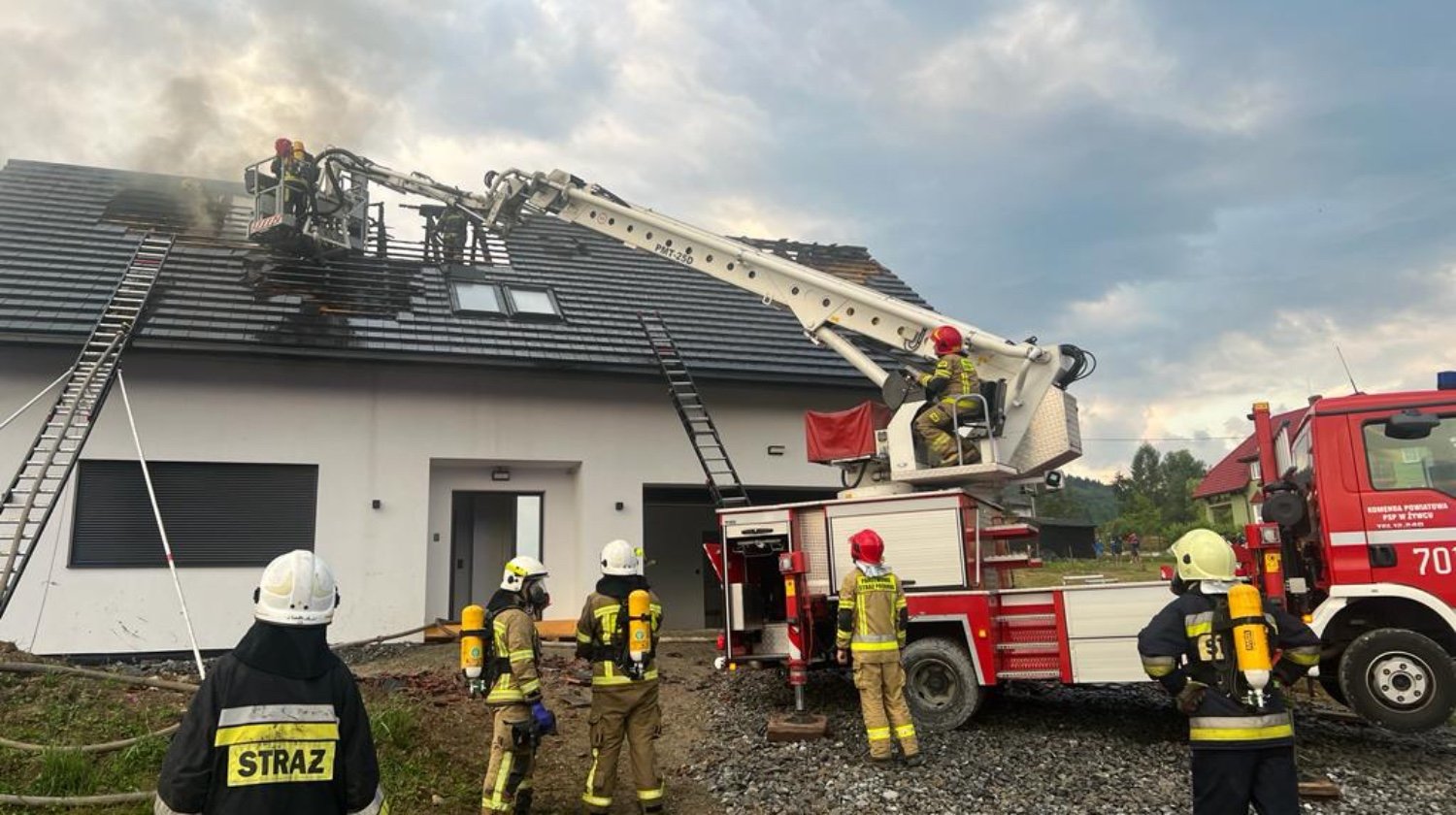 Do pierwszego zdarzenia doszło w miejscowości Koszarawa w dniu 16 lipca 2023 roku. W wyniku pożaru spłonęło poddasze budynku mieszkalnego, które nadaję się do całkowitego remontu. Właścicielem budynku jest czynnie działający druh Ochotniczej Straży Pożarnej w Koszarawie.