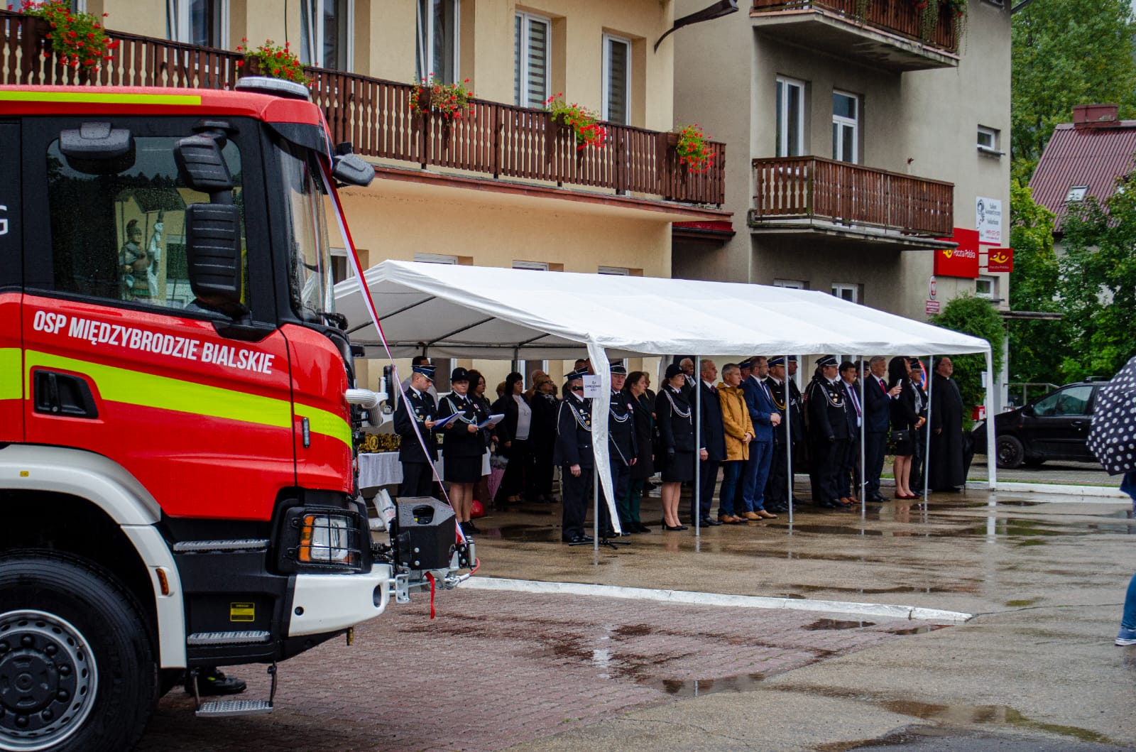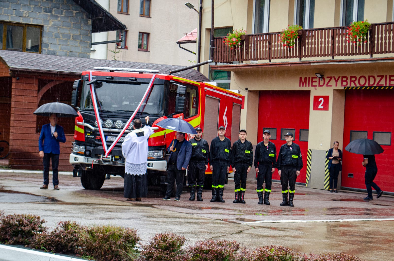 30 września 2023 r. na placu przed remizą Ochotniczej Straży Pożarnej w Międzybrodziu Bialskim odbyło się uroczyste przekazanie i poświęcenie ciężkiego samochodu ratowniczo-gaśniczego na podwoziu SCANIA.