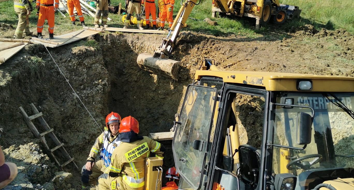 26 lipca 2021 roku o godz. 13.55 do Stanowiska Kierowania Komendanta Powiatowego PSP w Żywcu wpłynęło zgłoszenie o zasypanych osobach w wykopie w miejscowości Glinka, Gmina Ujsoły. Do działań zadysponowano 4 zastępy z JRG Żywiec oraz 3 zastępy z OSP – Glinka, Ujsoły oraz Rajcza. Została również zadysponowana Specjalistyczna Grupa Poszukiwawczo-Ratownicza z Komendy Miejskiej PSP w Jastrzębiu-Zdroju. Po dojeździe pierwszych sił i środków na miejsce zdarzenia oraz w wyniku rozpoznania stwierdzono, że jedna osoba znajdowała się w osuwisku zasypana do połowy ciała, natomiast druga osoba, z którą nie było kontaktu znajdowała się pod ziemią na głębokości ok. 7 m. Działania straży pożarnej polegały na zabezpieczeniu miejsca zdarzenia, wyciągnięciu jednej osoby poszkodowanej z osuwiska i przekazaniu jej Zespołowi Ratownictwa Medycznego, zabezpieczeniu wykopu za pomocą drewnianych podestów utworzonych z dostępnego na miejscu zdarzenia drewna oraz z wykorzystaniem sprzętu będącego na wyposażeniu Specjalistycznej Grupy Poszukiwawczo-Ratowniczej, wykonaniu dostępu do osoby przysypanej za pomocą sił własnych rąk przez ratowników zabezpieczonych w uprzęże, linki ratownicze oraz niezbędny sprzęt burzący. O godzinie 19.30 strażacy wydobyli drugiego poszkodowanego i przekazali lekarzowi, który stwierdził zgon mężczyzny. Dalsze czynności prowadziła Policja oraz Prokurator w celu określenia przyczyn powstania tego wypadku. Działania ratownicze trwały blisko 6,5 godziny, uczestniczyło w nich 25 funkcjonariuszy z PSP oraz 14 druhów z OSP, Pogotowie Ratunkowe, Policja, Prokurator oraz Wójt Gminy Ujsoły.
