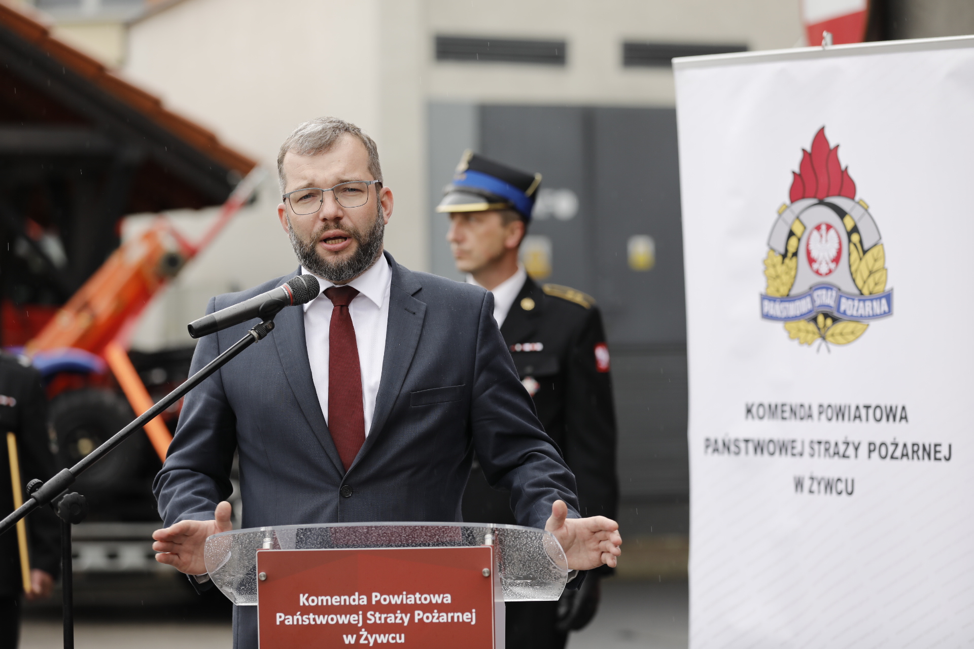 Następnie głos zabrał Komendant Powiatowy Państwowej Straży Pożarnej w Żywcu bryg. Łukasz Węgliński.