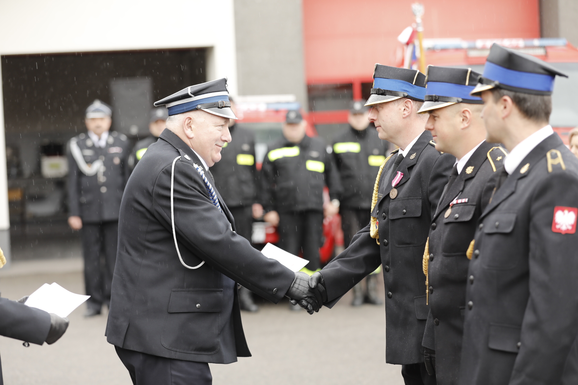 Podczas uroczystej zbiórki z okazji Dnia Strażaka wręczono odznaczenia, wyróżnienia i awanse funkcjonariuszom PSP oraz decyzję włączenia jednostek OSP do KSRG, nie zabrakło także życzeń i gratulacji.