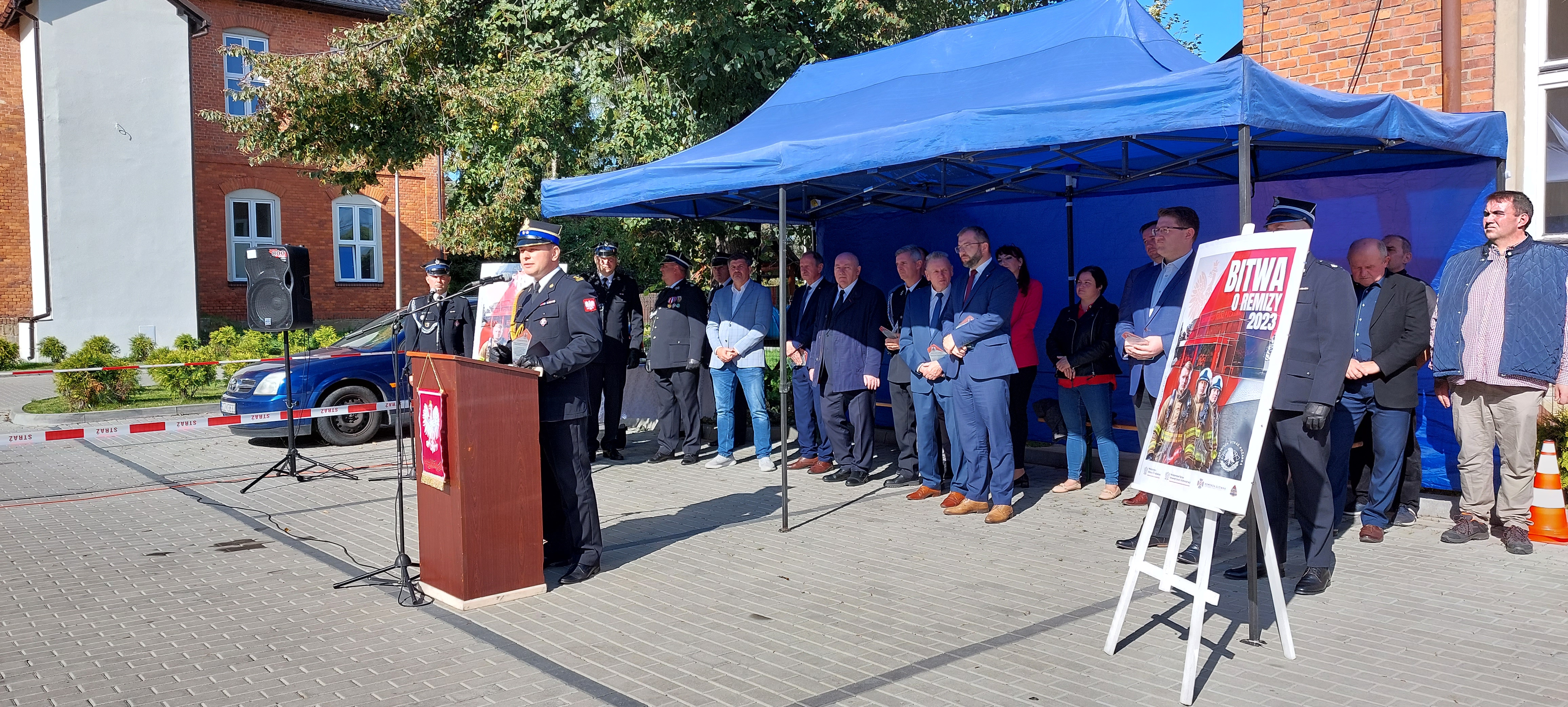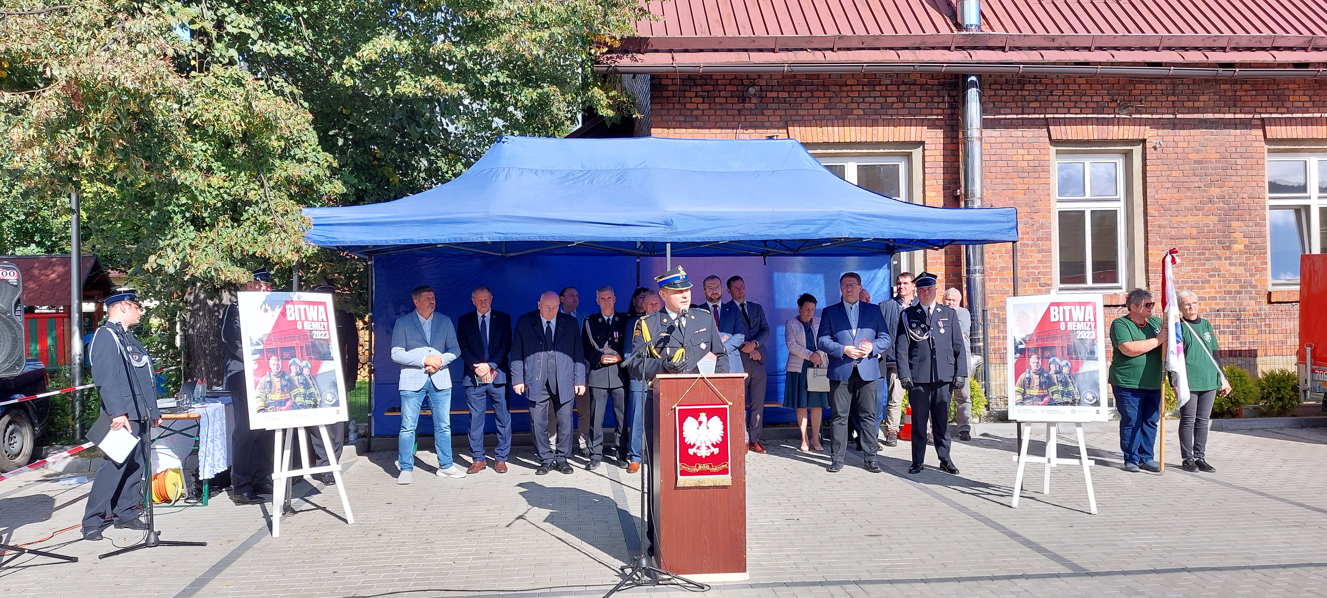 W dalszej części uroczystości głos zabrali zaproszeni goście, którzy w swoich przemówieniach podziękowali druhom za pracę na rzecz ochrony przeciwpożarowej oraz za gotowość do wypełniania ciężkiej i niebezpiecznej służby na rzecz drugiego człowieka. Złożyli również serdeczne gratulacje z okazji przekazania nowego sprzętu transportowego. W imieniu Śląskiego Komendanta Wojewódzkiego Państwowej Straży Pożarnej nadbryg. Jacka Kleszczewskiego głos zabrał bryg. Łukasz Węgliński – Komendant Powiatowy PSP w Żywcu.