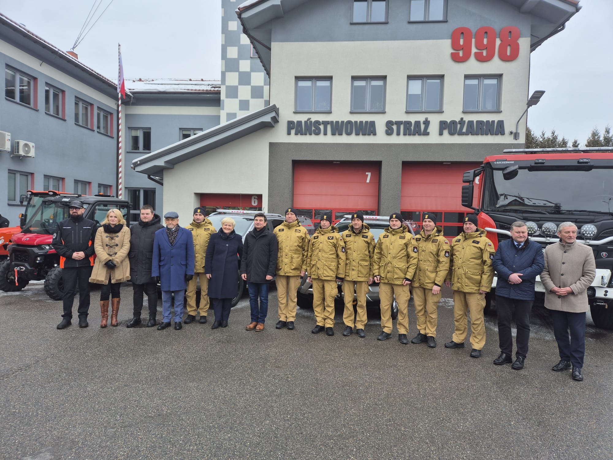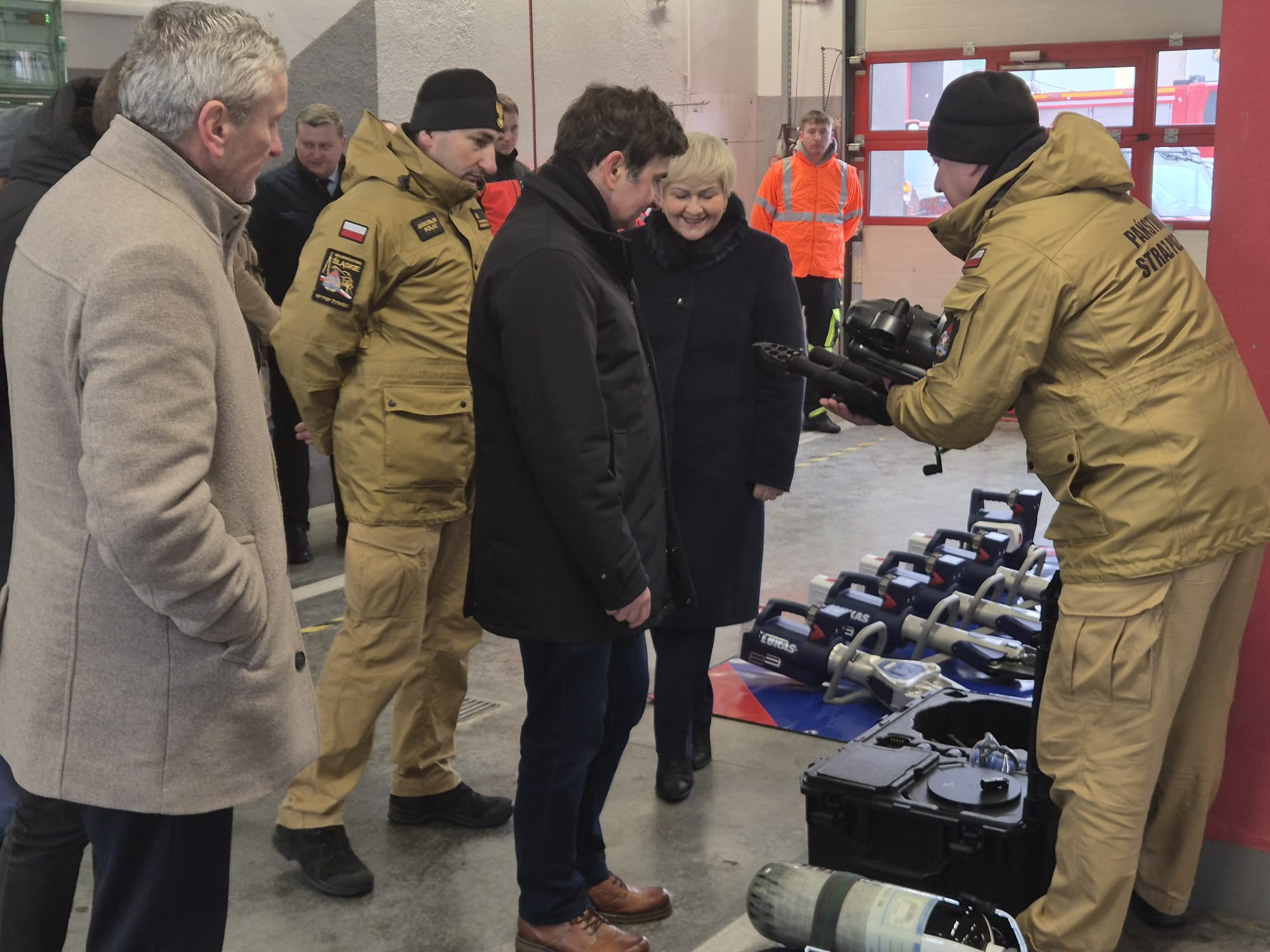 Dzisiejsza wizyta przedstawicieli administracji rządowej i samorządowej w żywieckiej Komendzie Powiatowej Państwowej Straży Pożarnej miała wymiar strategiczny. W spotkaniu udział wzięli m.in. Wojewoda Śląski Marek Wójcik, Starosta Żywiecki Adrian Midor, Poseł na Sejm Pani Małgorzata Pępek, Wicestarosta Stanisław Kucharczyk, Burmistrz Miasta Żywiec Antoni Szlagor, Prezes Zarządu Ratownictwa Medycznego w Żywcu Piotr Dziedzic, Dyrektor Powiatowego Zarządu Dróg w Żywcu Jolanta Korczyk oraz Kierownik Zespołu Zarządzania Kryzysowego w Starostwie Powiatowym w Żywcu Wojciech Góra.