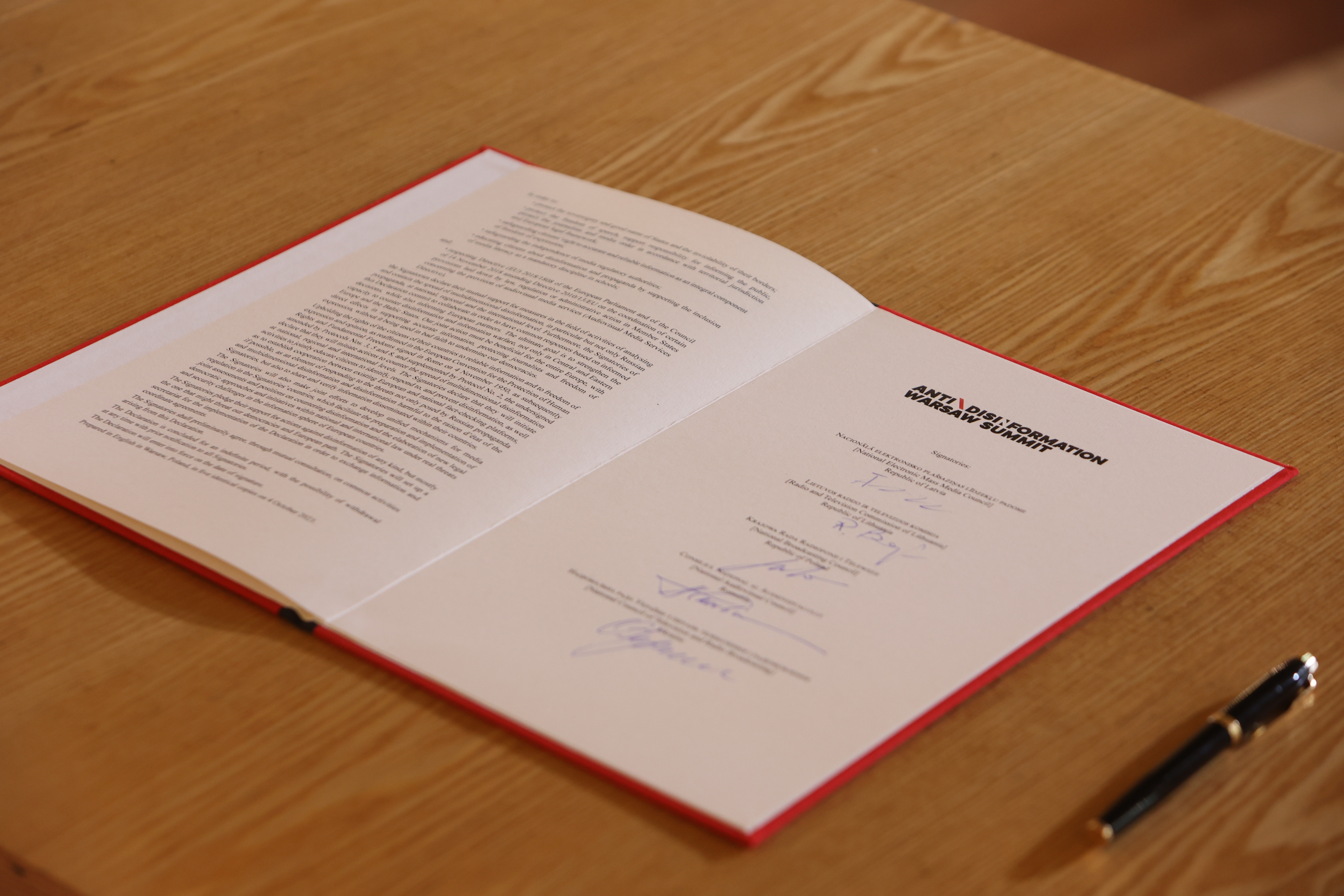 Sygnatariusze podejmą również wspólne wysiłki w celu opracowania zharmonizowanych mechanizmów regulacji mediów w swoich krajach, które ułatwią przygotowanie i wdrożenie wspólnych ocen i stanowisk w sprawie przeciwdziałania dezinformacji oraz opracowanie nowych inicjatyw i demokratycznego podejścia w ramach prawa krajowego i międzynarodowego w obliczu rzeczywistych zagrożeń i wyzwań związanych z bezpieczeństwem w sferze informacyjnej w krajach europejskich.
