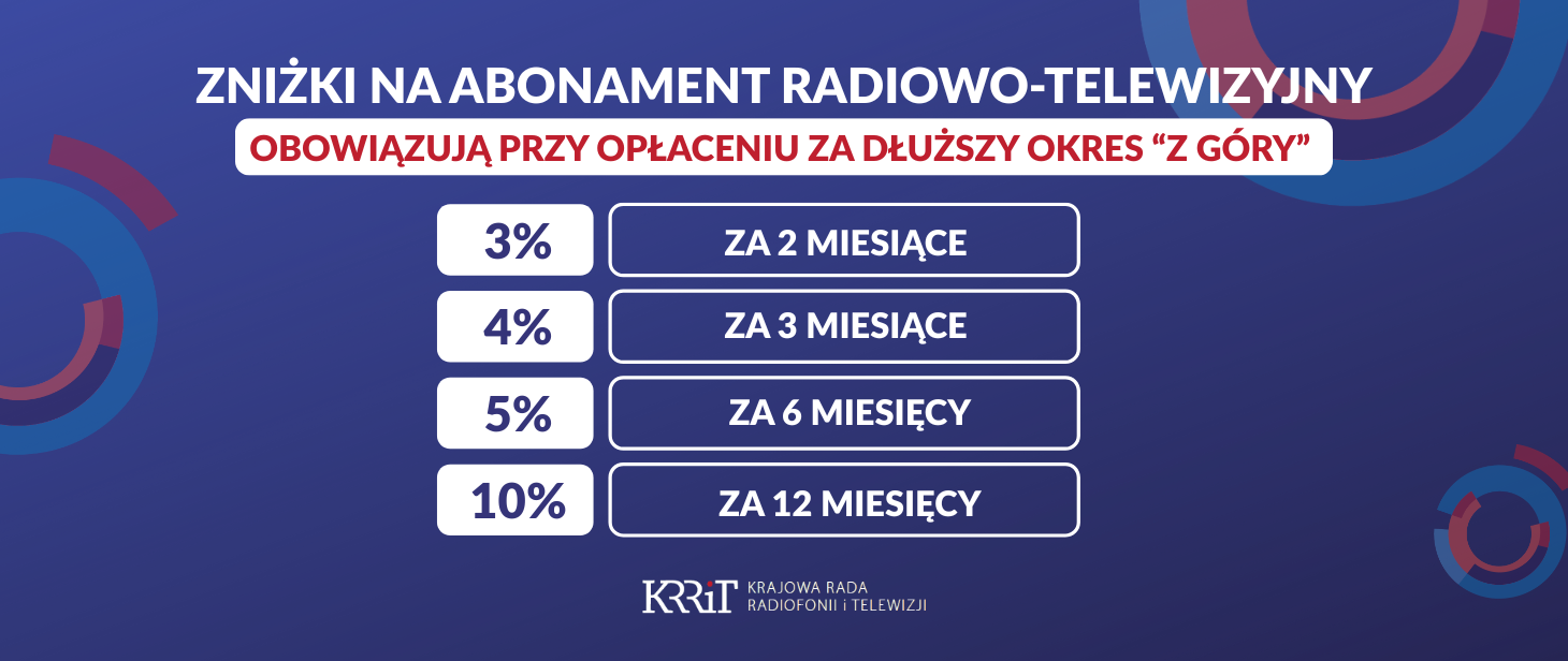 Szczegółową informację na ten temat można znaleźć pod linkiem - https://www.gov.pl/web/krrit/wysokosc-oplat-abonamentowych3