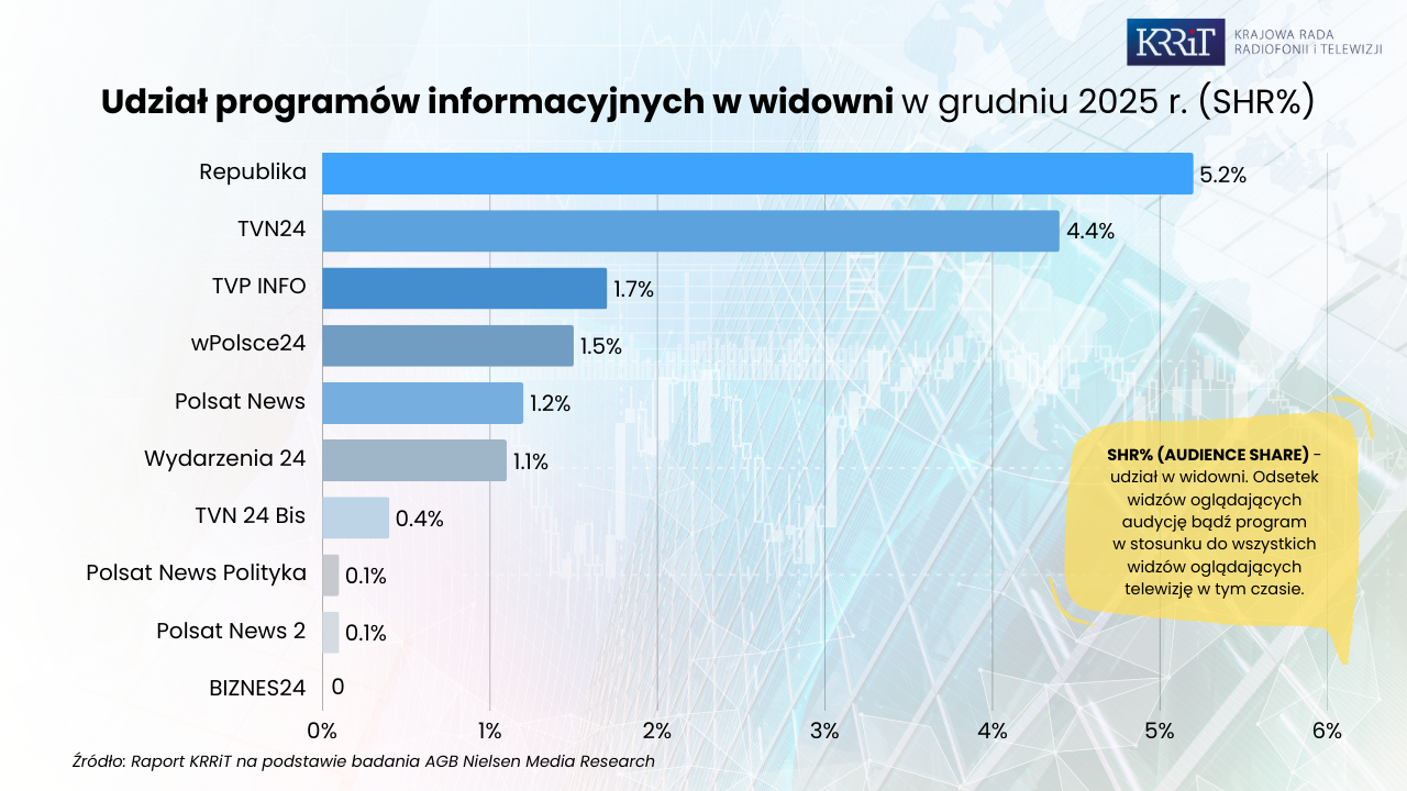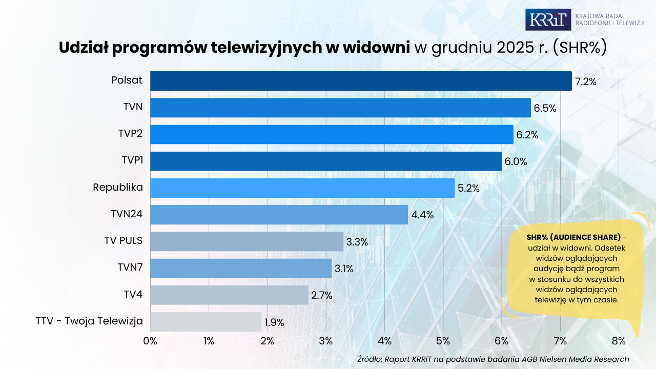 Oglądalność programów i audycji telewizyjnych w grudniu 2025 - raport KRRiT